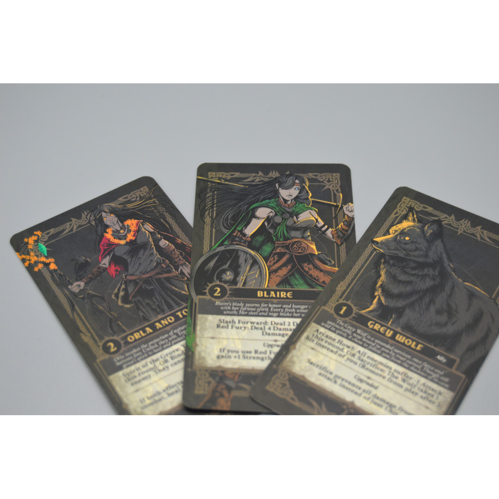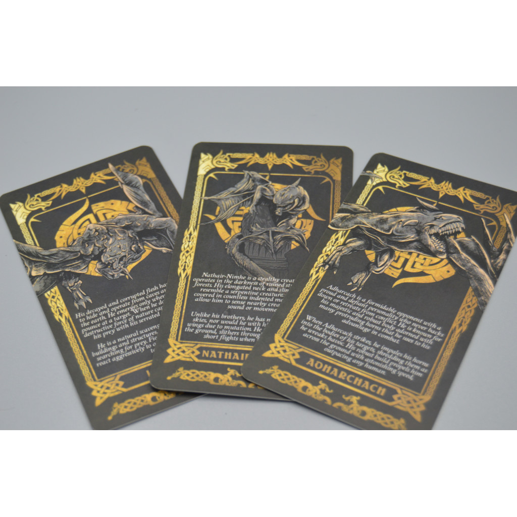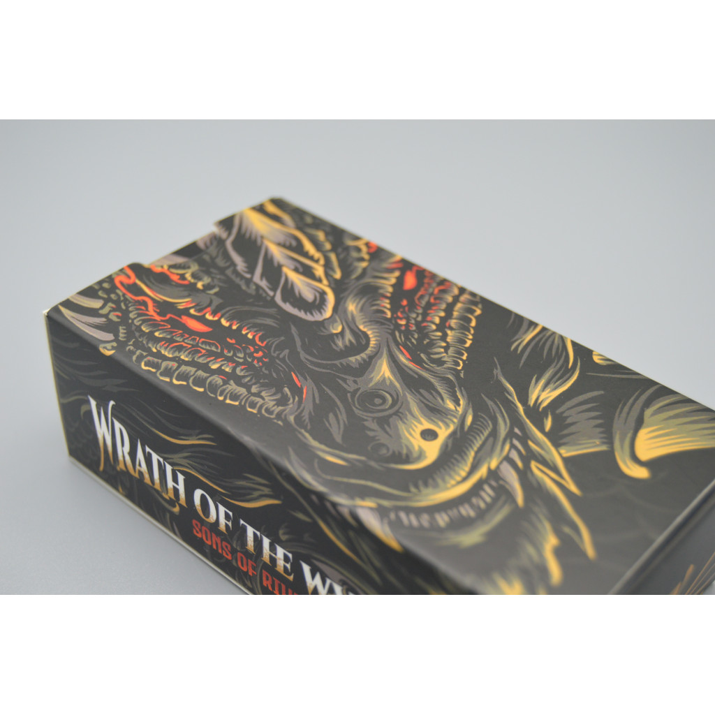 Deck de 87 cartes conçu pour jouer à Wrath of the Wyvern en solo. Comprend des cartes d’Armes, d’Alliés et de Compétences, ainsi que les 5 Cartes Dorées exclusives des Wyverns. Les cartes sont imprimées sur un carton de 350 gsm et laminées de haute qualité, offrant une grande durabilité et une excellente finition. Le set est présenté dans sa propre boîte pour un rangement et un transport faciles. Édition limitée avec très peu d’exemplaires disponibles et aucune réimpression prévue.