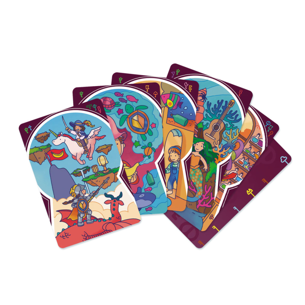 Choisit le scénario de ton choix (à l’aide des clés) et place une des 5 cartes au centre de la table. Puis, tous ensemble, tentez de découvrir l’élément commun qui relie chaque carte. N’as-tu pas déjà vu cet arc-en-ciel quelque part ? Et cette ancre, elle te dit quelque chose ?