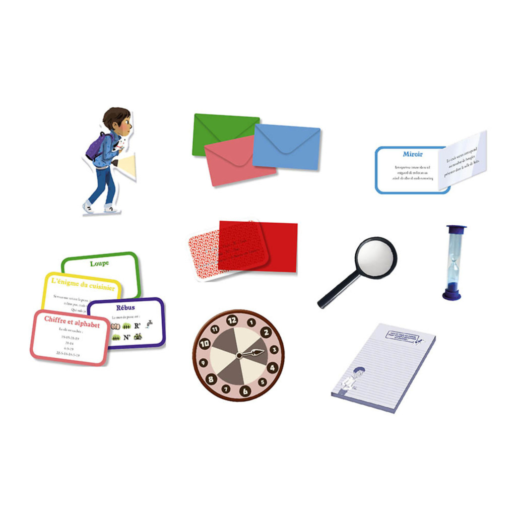 Il est donc temps d'évoquer les énigmes. Il y en a 180 ce qui assure une excellente rejouabilité. Vous pourriez même créer les vôtres sur de petits morceaux de papier ce qui aurait en plus comme avantage d'adapter leur niveau à vos enfants. Ne nous le cachons pas, le 6 ans et plus annoncé sur la boite est sans doute un peu généreux, 6 ans correspondant à une grande section maternelle ou du CP. Pour un enfant commençant la lecture, les devinettes utilisant le javanais sont plus que perturbantes. Les rébus, la loupe ou le miroir sont beaucoup plus abordables, le morse ou la numérotation de l'alphabet un peu plus durs. L'aspect fouille quant à lui se résumera à du cherche et trouve mais sur une surface relativement importante en 3 dimensions, ce qui donnera un intérêt supplémentaire à la structure.