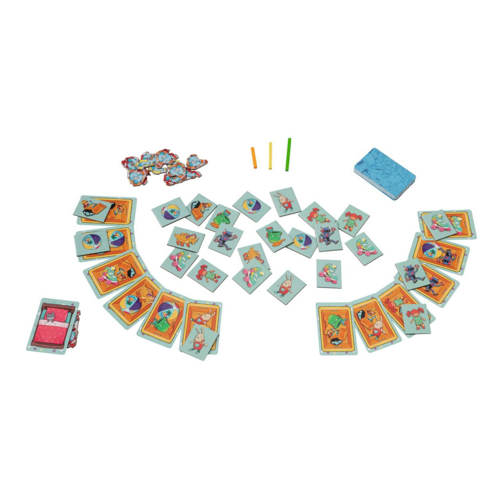Au signal « Raaaangement ! », vous pouvez commencer ! Les joueurs remplissent leurs caisses de jouets le plus rapidement possible en y rangeant les bonnes tuiles « jouets ». S’ils ne sont pas assez rapides, ils devront pendre des tuiles « désordres » et les fourrer sous le lit. Celui qui a le moins de désordre sous son lit gagne la partie.