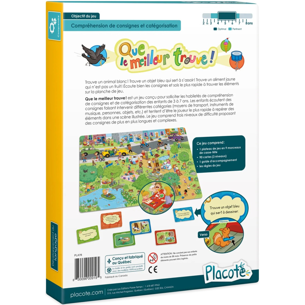 Les enfants écoutent des consignes faisant intervenir différentes catégories (moyens de transport, instruments de musique, personnes, objets, etc.) et tentent d'être le joueur le plus rapide à repérer des éléments dans une scène illustrée. Le jeu comprend trois niveaux de difficulté proposant des consignes de plus en plus longues et complexes.