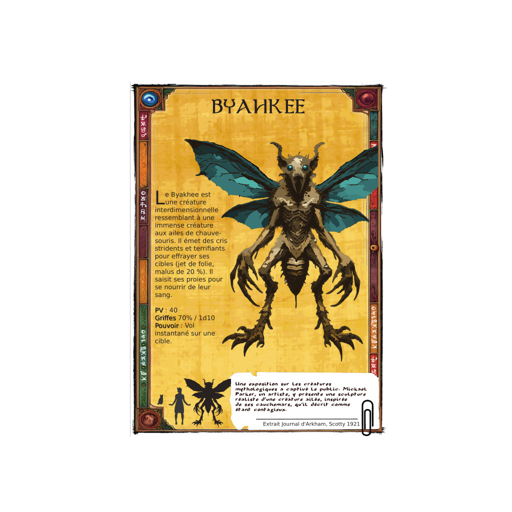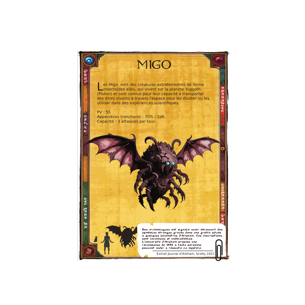 Découvrez plus de 30 monstres à affronter : Profond, Chien Tindalos, Chat de saturne, Gnoph-Keh, Goule,  Migo .... et aussi chat, chien, fouriere...