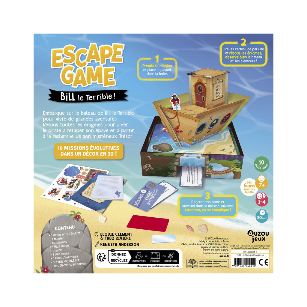 Contenu : 1 décor en 3D évolutif/10 missions/1 filtre rouge/1 miroir/1 bloc-notes/1 livre/ 2 planches d'éléments en carton/1 feuille de stickers