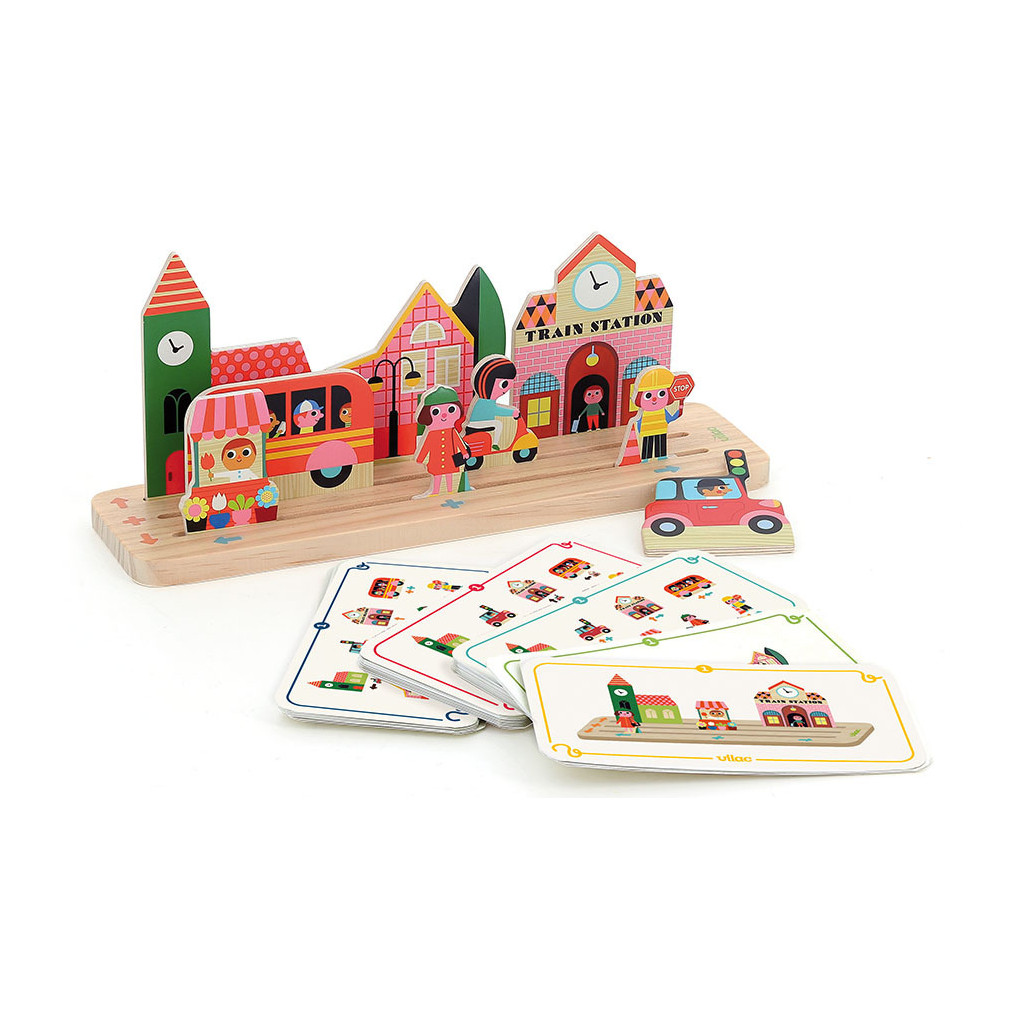 « Si le scooter se place à gauche du bus, la gare devra donc se placer à droite ». Le jeu de logique "Oussassplass" en bois, illustré par Ingela P.Arrhenius, invite votre enfant dès 3 ans à placer au bon endroit les pièces en bois selon des cartes défis. Un concept amusant qui va stimuler sa logique, sa motricité fine, son sens de l’observation et sa compréhension de l’espace (gauche, droite, haut, bas, milieu). Le petit plus ? Des cartes défis évolutives, pour jouer en famille.