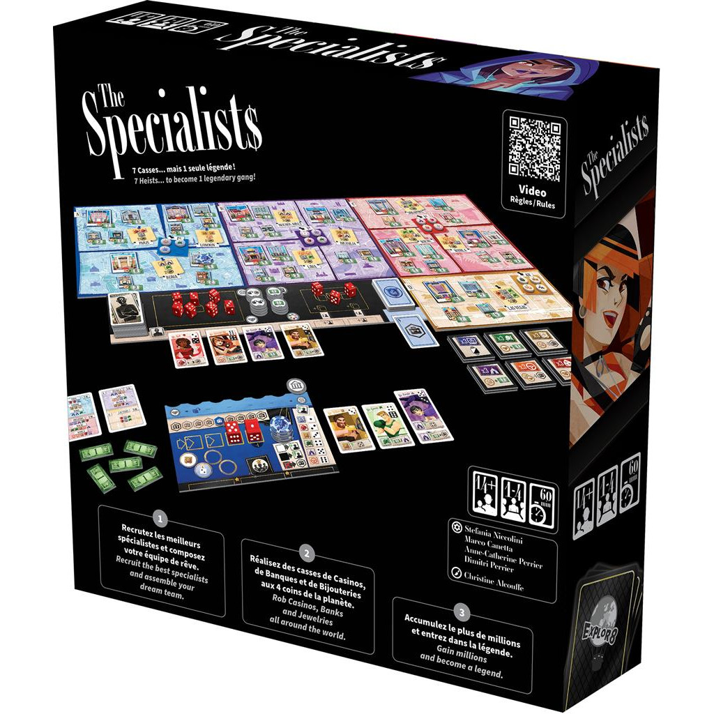 Lorsqu’un joueur recrute son 3ème spécialiste de la même compétence, il gagne la tuile Expertise correspondante à cette même compétence, qui offre un pouvoir jusqu’à la fin de la partie (par exemple, l’expertise Hackeuse permet de modifier la valeur d’un dé, l’expertise Perceur de coffre permet de dépenser des Equipements de moins pour faire un casse, etc).