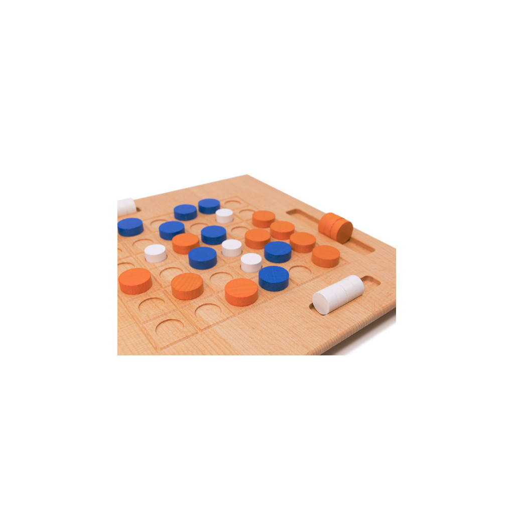 Seuls les jetons blancs mettent de l’action dans le jeu – et il vous les faut pour former des groupes avec vos jetons de couleur ou pour gêner votre adversaire.
