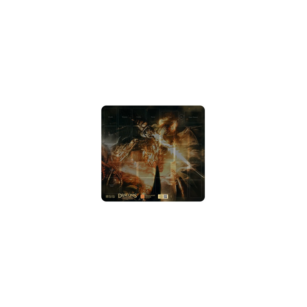 Draconis Invasion: Giant Playmat est un tapis de jeu géant qui permet de disposer toutes les cartes nécessaires à la mise en place du jeu. Ses dimensions sont de 53 x 49,5 cm.