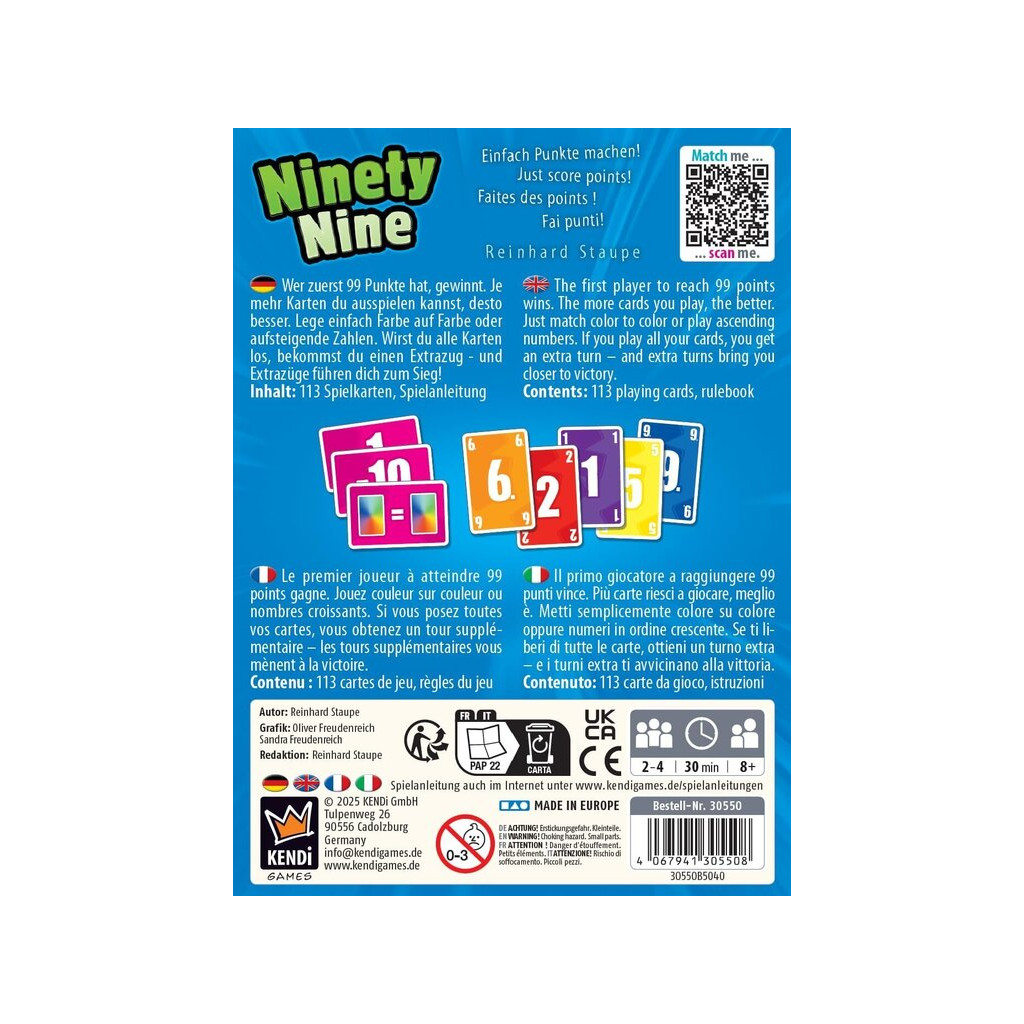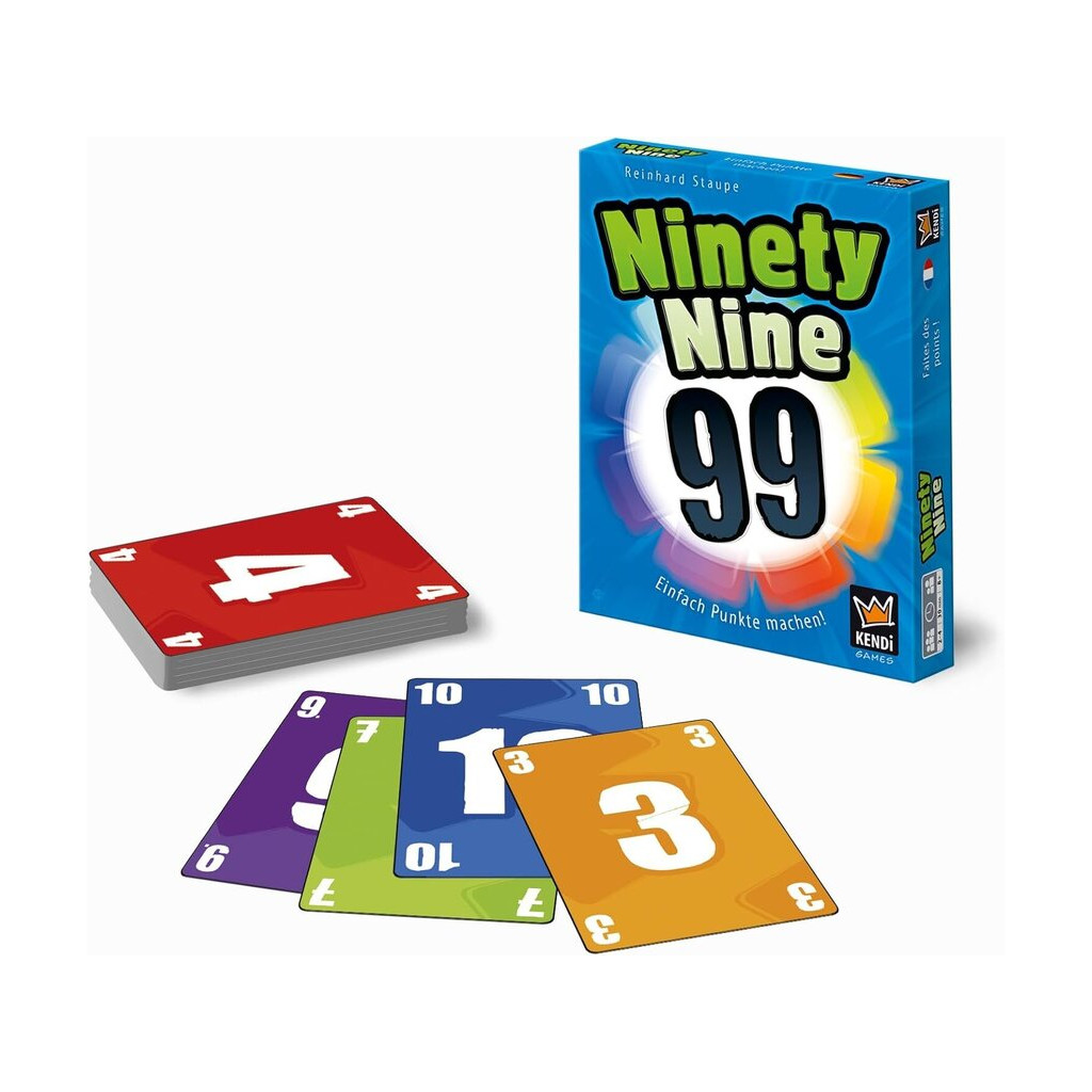 Ninety Nine est une course jusqu’à 99 points, où les joueurs marquent des points à la fois pour un jeu de cartes réfléchi et pour un défausse stratégique.
