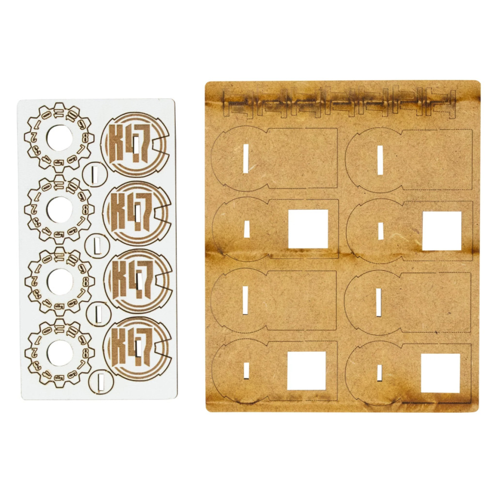 Le set "Konflikt'47 - MDF Unit Pin Markerst" contient 7 marqueurs ainsi que 2 gabarits pour le jeu Konflikt'47.