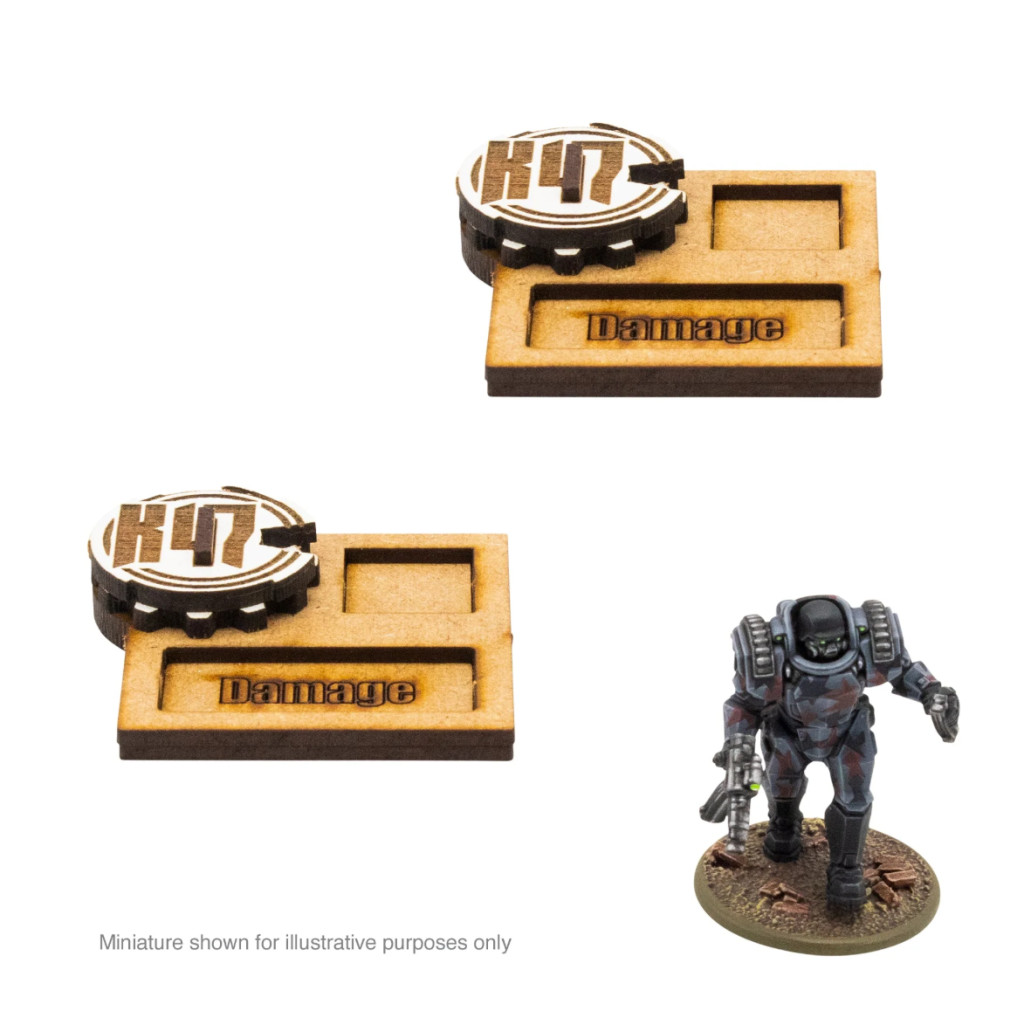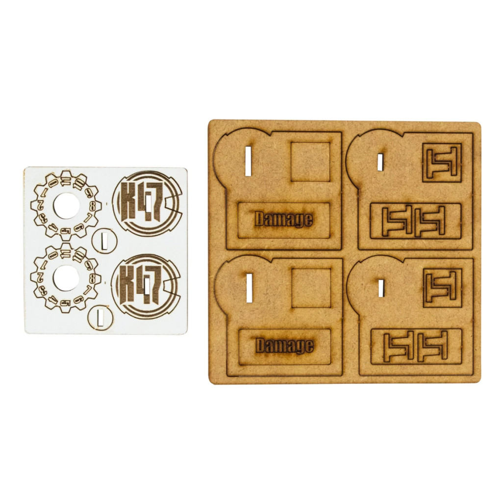 Les marqueurs de pin sont un mécanisme clé dans Konflikt '47, et vous devez pouvoir les suivre pour toutes vos unités. Chacun de ces marqueurs vous permet de suivre les marqueurs de pin d'une unité, de 0 à 11, tout en rangeant son dé d'ordre en toute sécurité, ce qui vous permet de garder votre table bien rangée et le statut de votre unité clair !