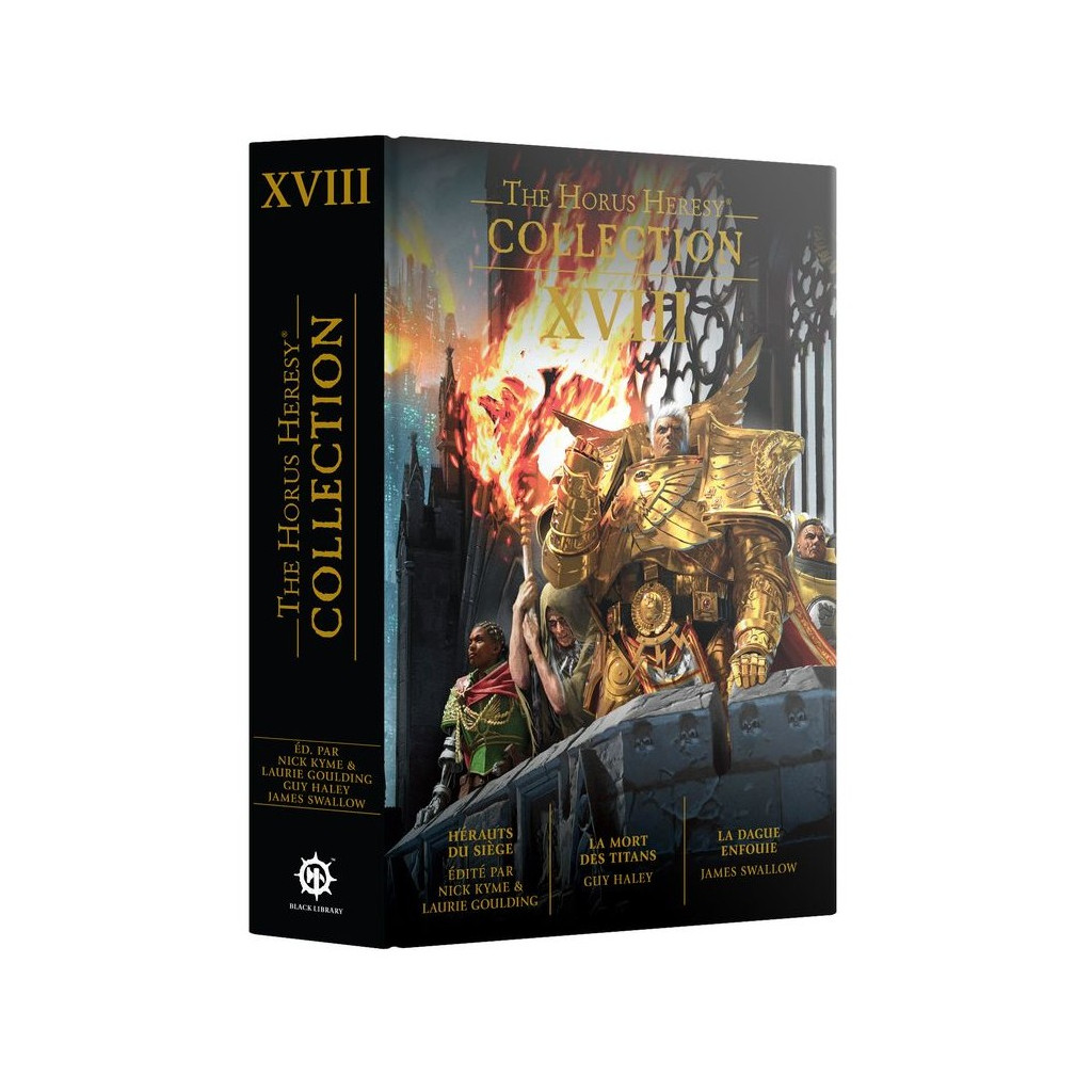 La Mort des Titans nous dépose sur la ligne de front dans le Système Bêta-Garmon, lequel se trouve sur la route la plus directe, et la seule viable, menant au Système Sol et à Terra. Des Titans s'y affrontent, les machines divines des Loyalistes contre celles des Renégats venues leur disputer ce trophée. Ce conflit ne sera pareil à aucun autre, une bataille de fin du monde, qui pourrait se révéler déterminante pour la prochaine phase de la guerre. La Death Guard entame la poussée initiale vers Terra dans La Dague Enfouie. Lorsque sa flotte se retrouve encalminée, et la Légion affligée par un mal terrible, le Primarque doit prendre une décision qui les maudira pour l'éternité. L'anthologie Hérauts du Siège rapproche encore davantage les armées du Maître de Guerre de leur but ultime: la destruction du Monde-trône. Seize histoires courtes explorent les trahisons et les victoires incalculables qui ont mené à ce point de bascule de la guerre.
