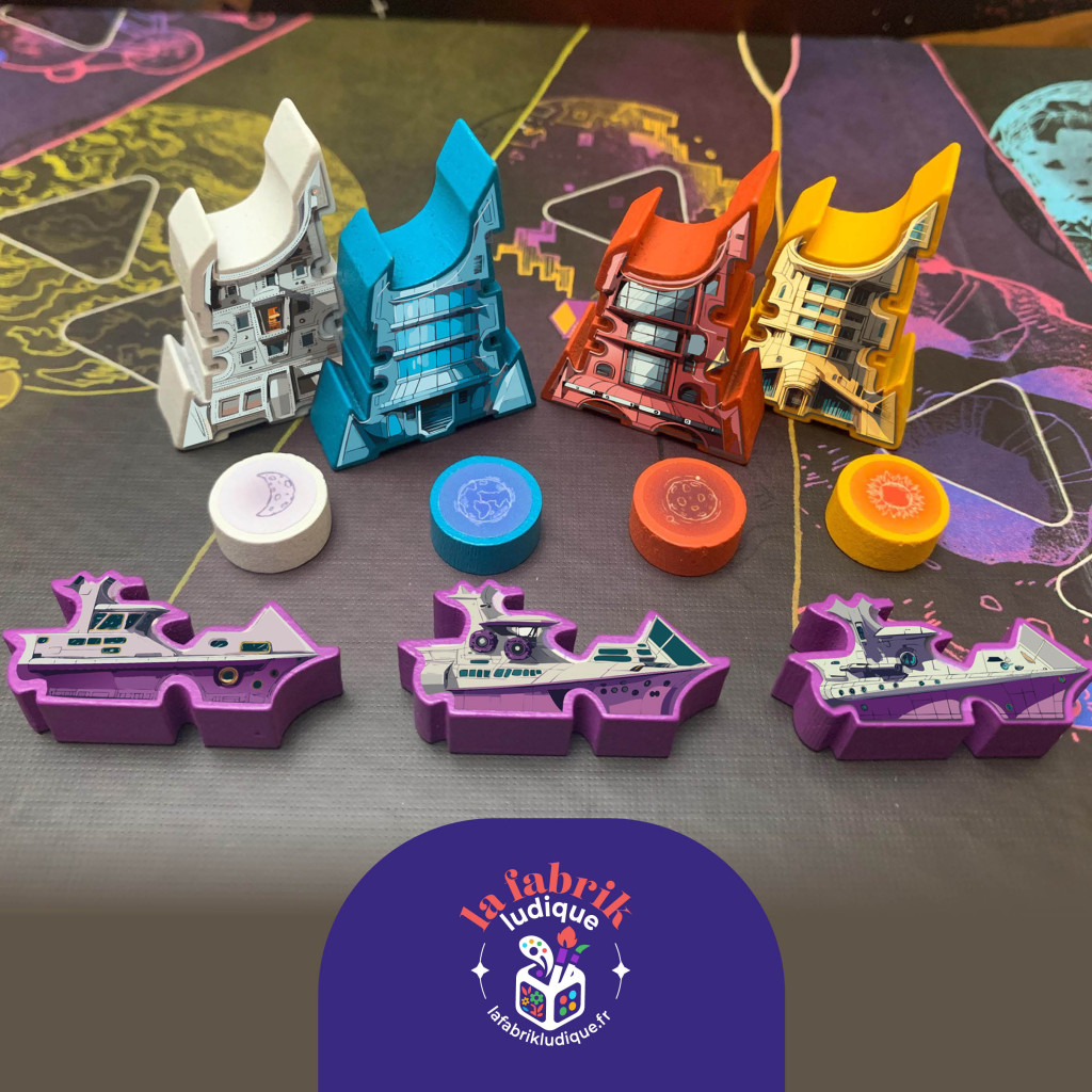 - Stickers recto/verso pour vos personnages : vaisseaux, marqueurs objectifs et bâtiments emblématiques