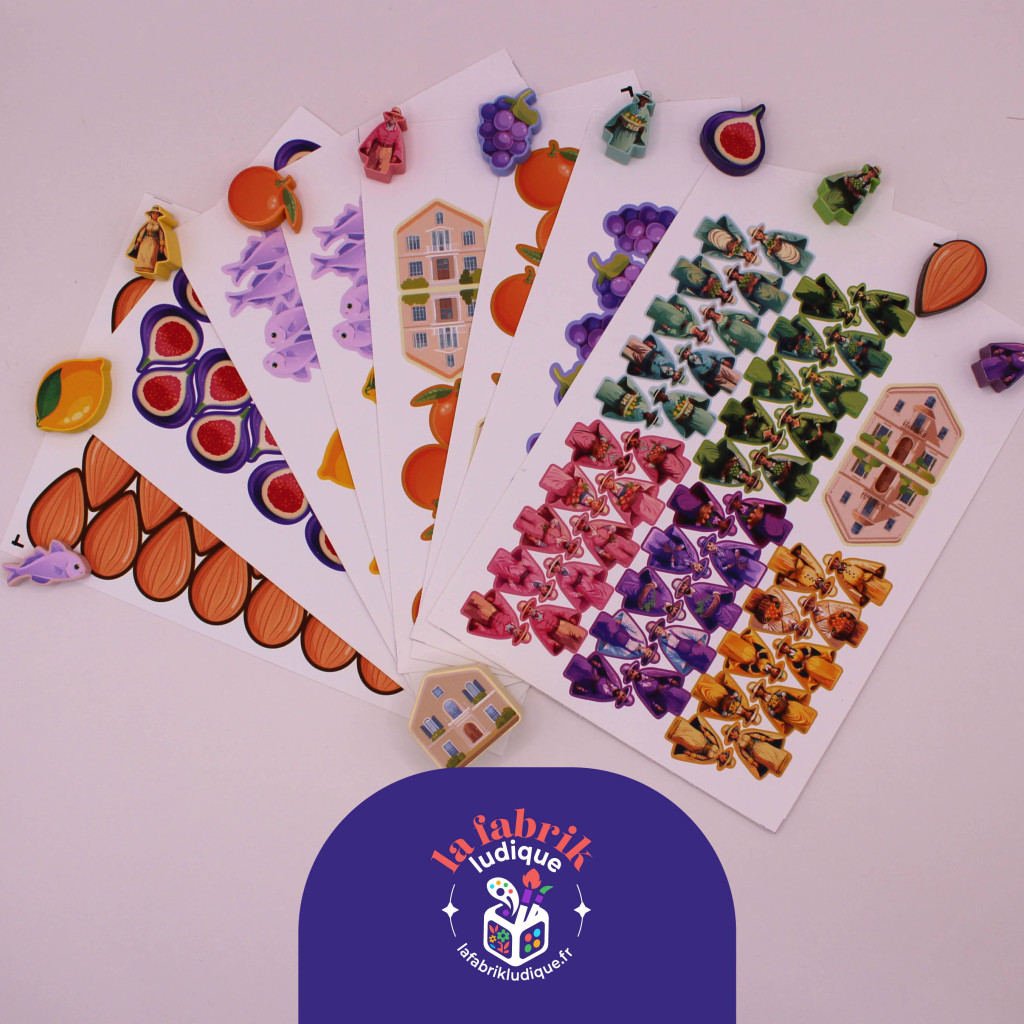 Apportez du soleil à vos parties de Finca avec ce pack de stickers faits main pour vos meeples et pions !