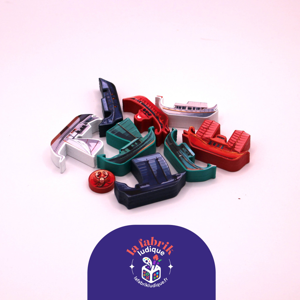 Les illustrations sont en partie réalisées à l’aide de l’IA générative, puis ajustées et retravaillées par «La Fabrik Ludique» afin d’obtenir un meilleur rendu sur les meeples.