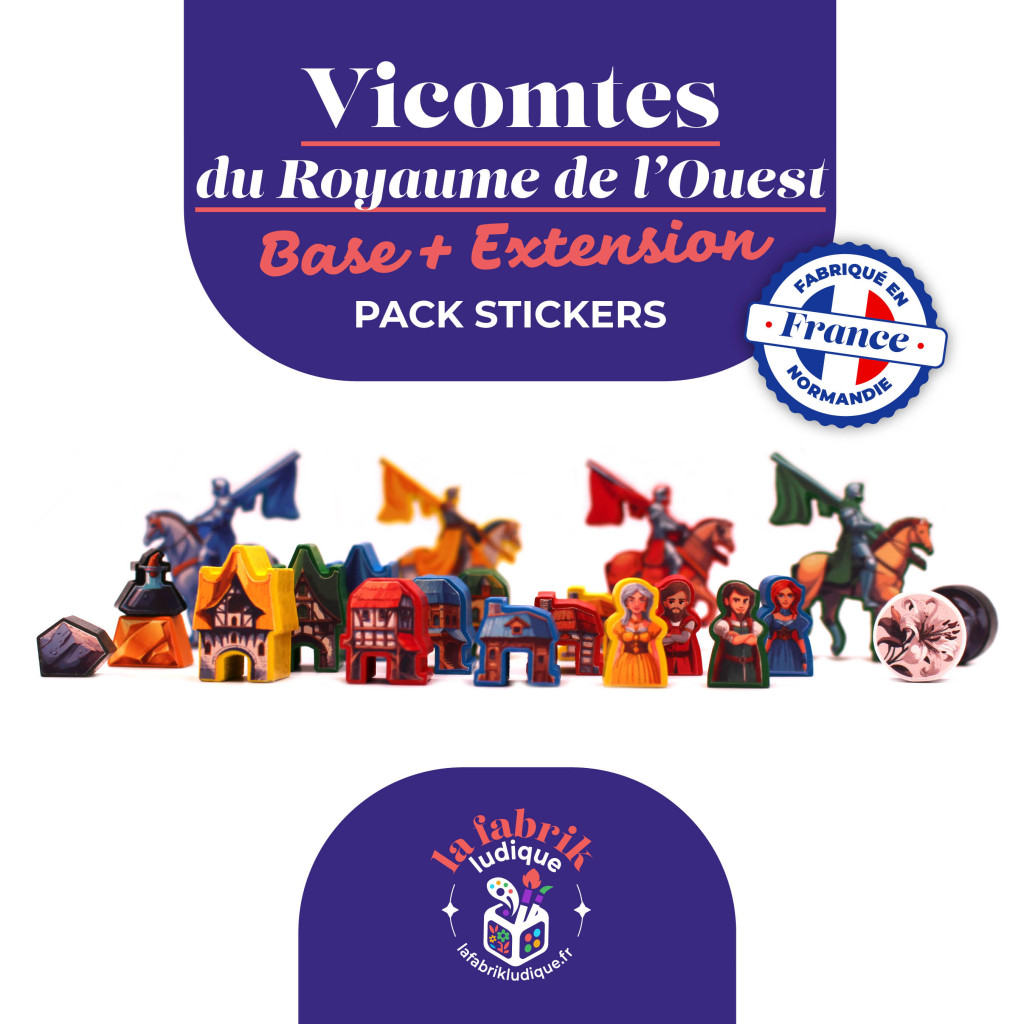 Plongez encore plus profondément dans l’univers de Vicomtes du Royaume de l’Ouest et extension grâce à notre kit de stickers spécialement conçu pour personnaliser chaque meeple du jeu.