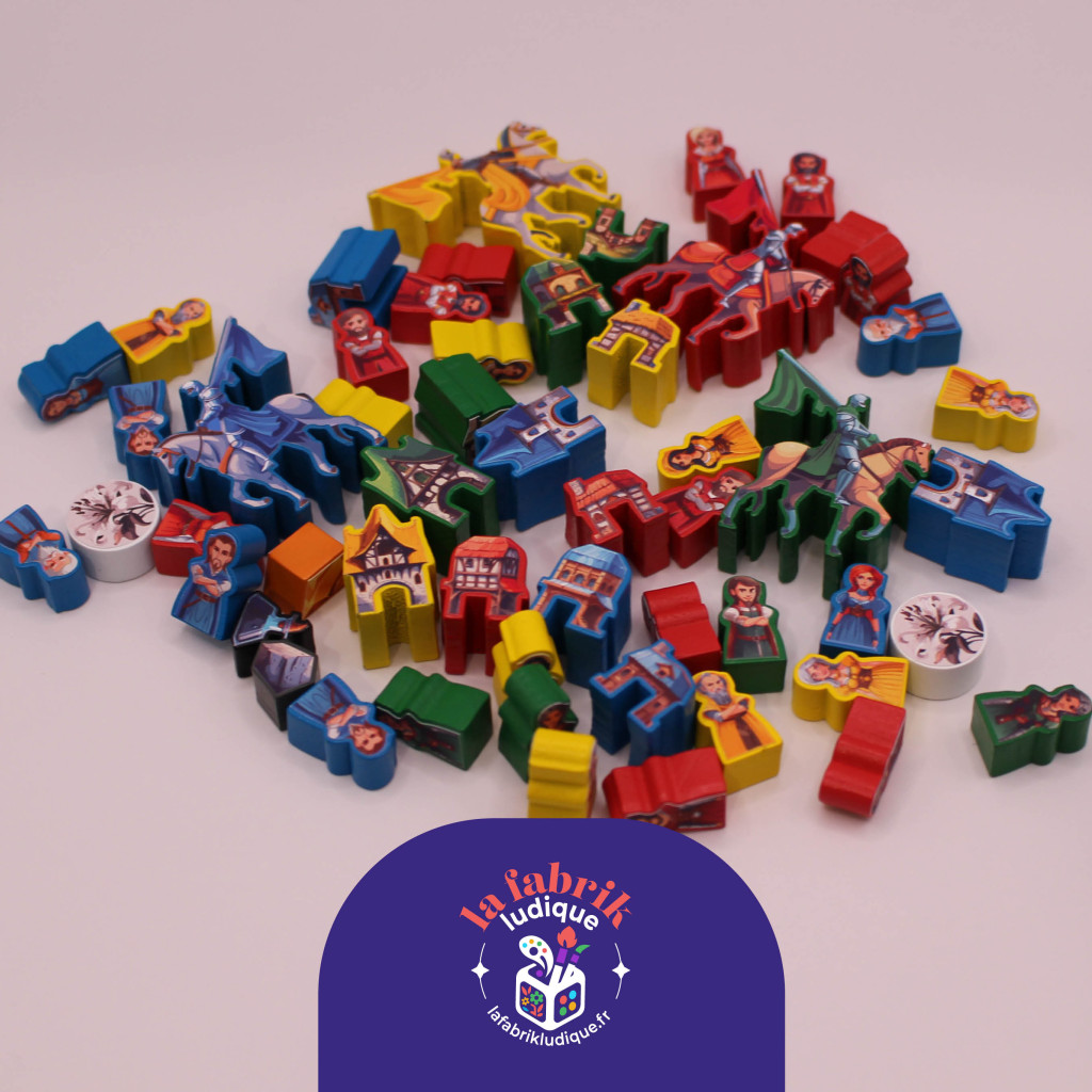 - Stickers recto/verso pour vos personnages, chevaliers et ressources du jeu