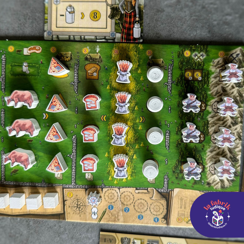 Chaque autocollant a été pensé pour sublimer le matériel tout en respectant l’univers écossais, agricole et économique du jeu. Une touche visuelle élégante pour des parties plus lisibles, plus immersives… et dignes des plus grands clans des Highlands !