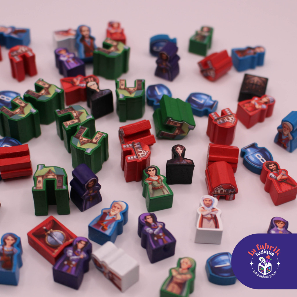 Les illustrations sont en partie réalisées à l’aide de l’IA générative, puis ajustées et retravaillées par «La Fabrik Ludique» afin d’obtenir un meilleur rendu sur les meeples.