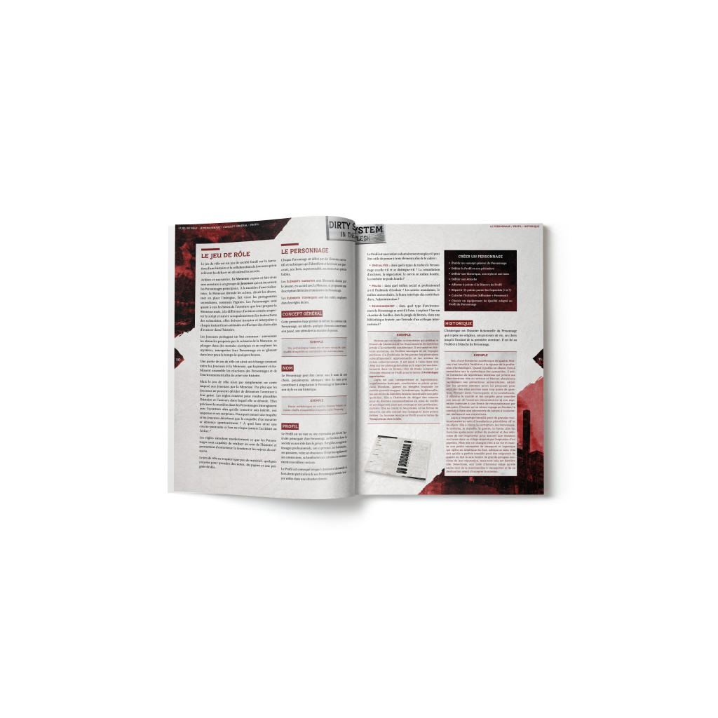 Vous trouverez dans ce livret toutes les règles nécessaires pour créer vos personnages en quelques minutes et plonger dans l’histoire, sans détails superflus. Ne manquez plus un scénario car ses règles vous semblent trop complexes : le Dirty System prend le relais.