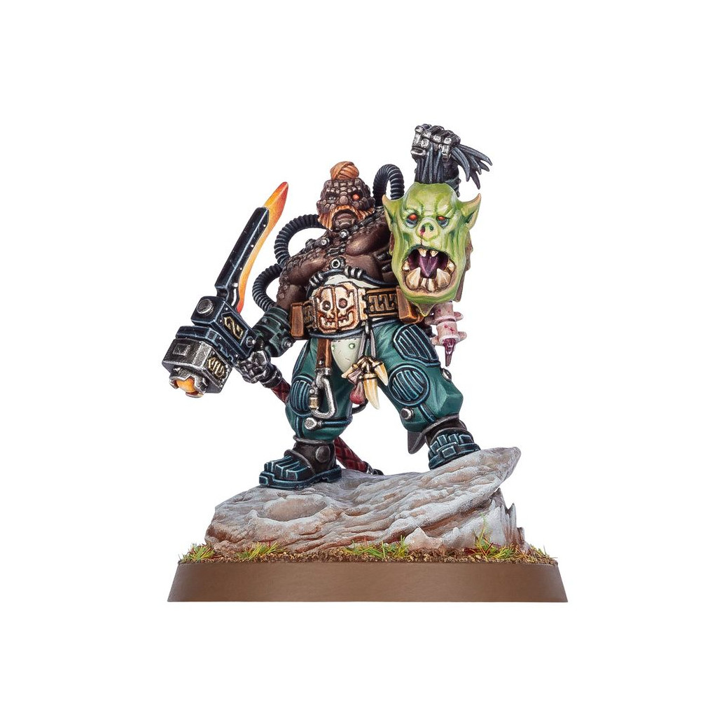 Ce kit en plastique permet d'assembler Berehk Stornbröw, un rouleau-compresseur du corps à corps pour vos armées des Ligues de Votann dans les parties de Warhammer 40,000. Employez l'extrémité "marteau" de la Vengeance de Kromlôk pour broyer les plus puissantes des cibles ennemies, telles que le Boss Ork infortuné dont la tête sert désormais de trophée à Berehk, ou utilisez l'extrémité "pioche" pour prélever un terrible tribut parmi les troupes. Ce héros est idéal pour mener la charge et ajouter sa force au plus fort des combats, à la tête de vos Beserks Cthoniens.