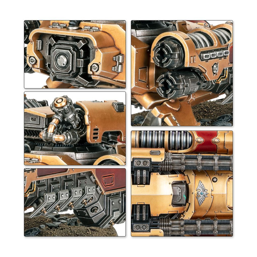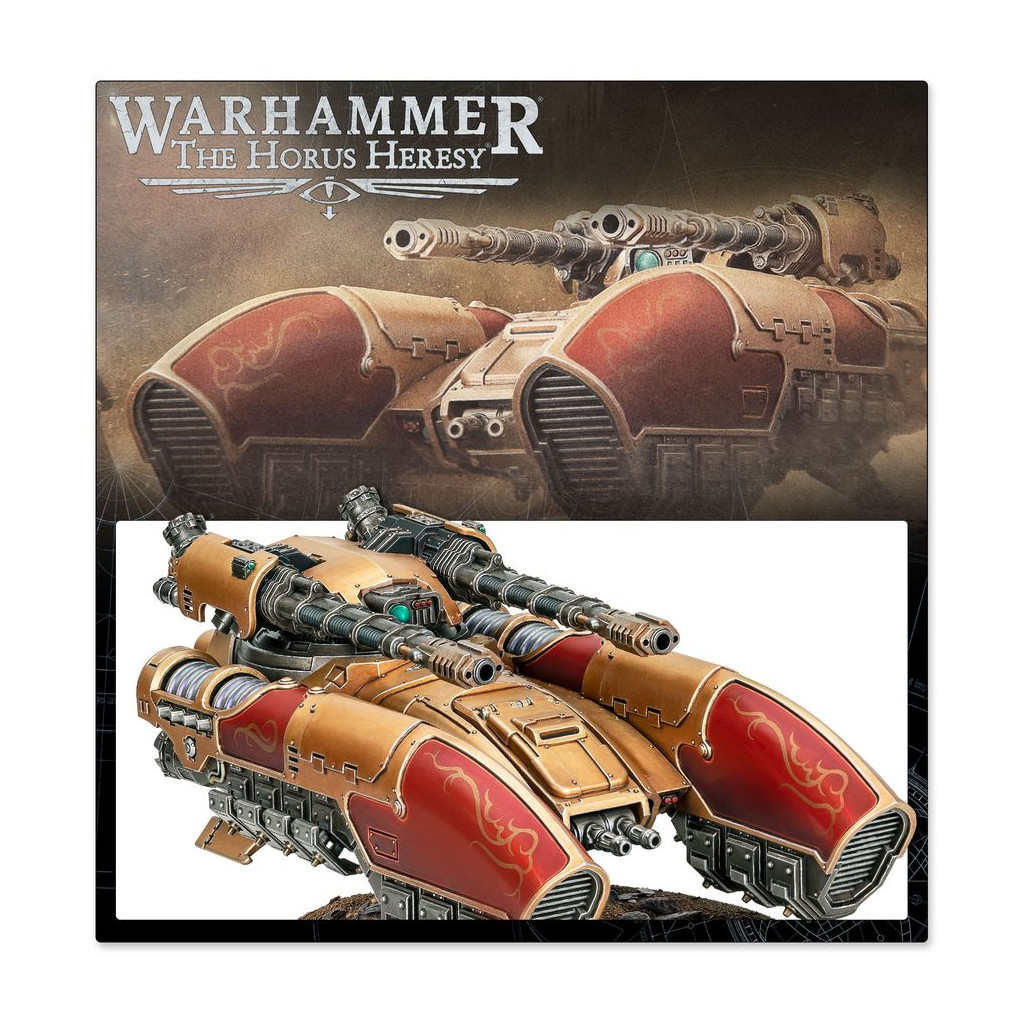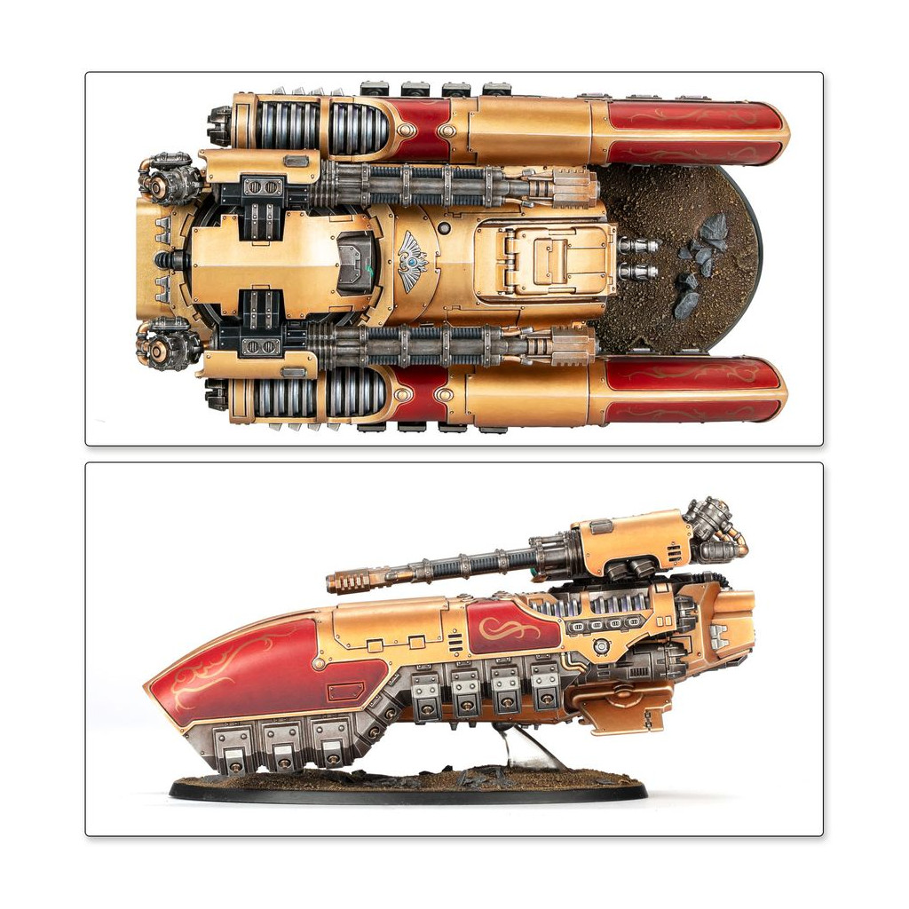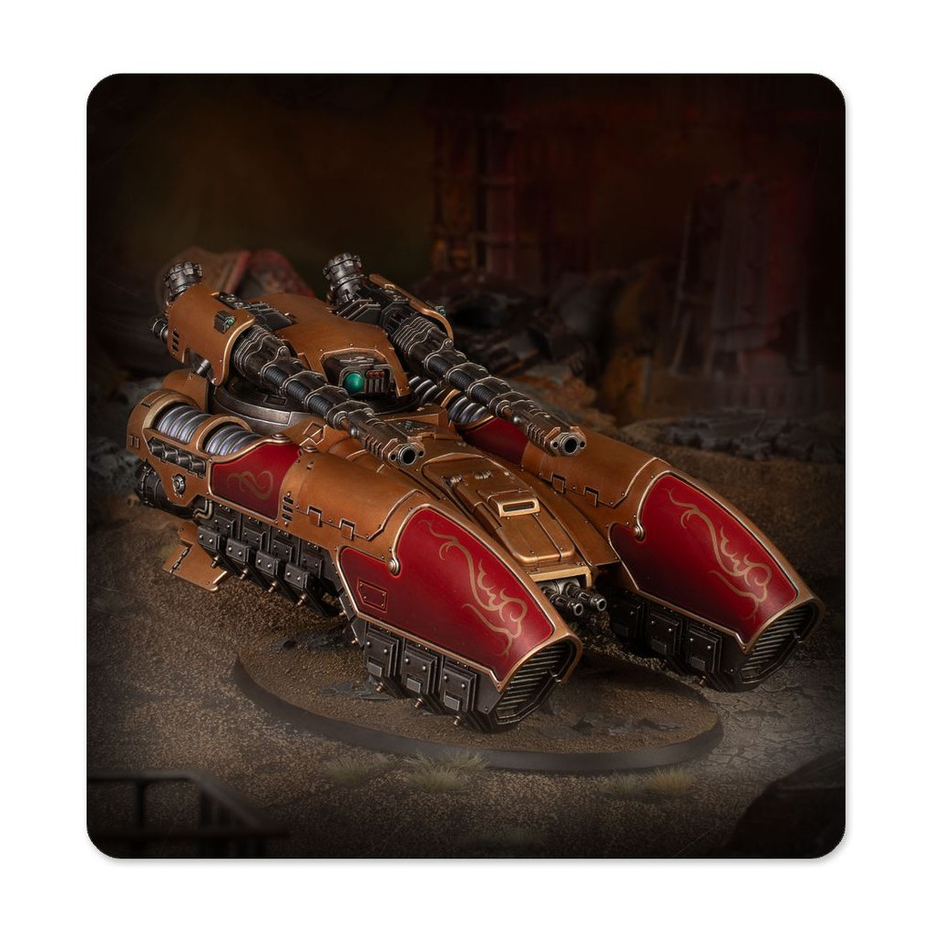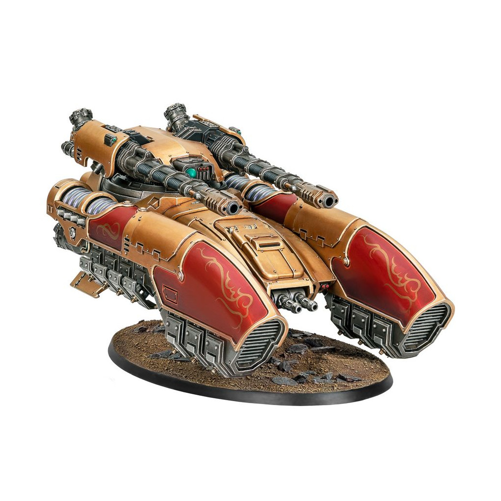 Le Char Antigrav Caladius offre à la Legio Custodes une plateforme mobile et robuste sur laquelle monter un des éléments les plus lourds de son arsenal: un canon accélérateur Iliastus jumelé. Avec cette combinaison de systèmes et d'armes avancés, le Caladius est peut-être l'unité blindée de ligne la plus puissante de sa taille au sein des forces impériales.