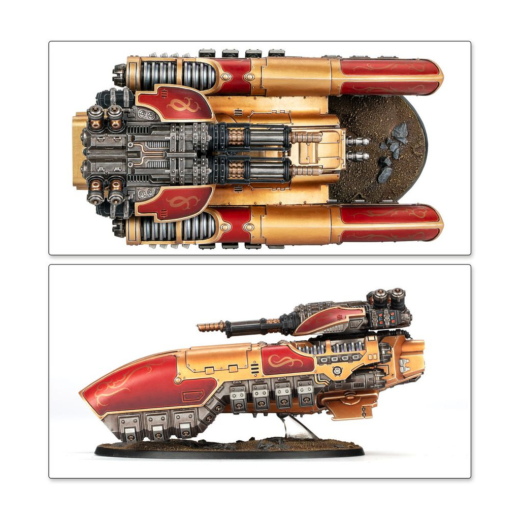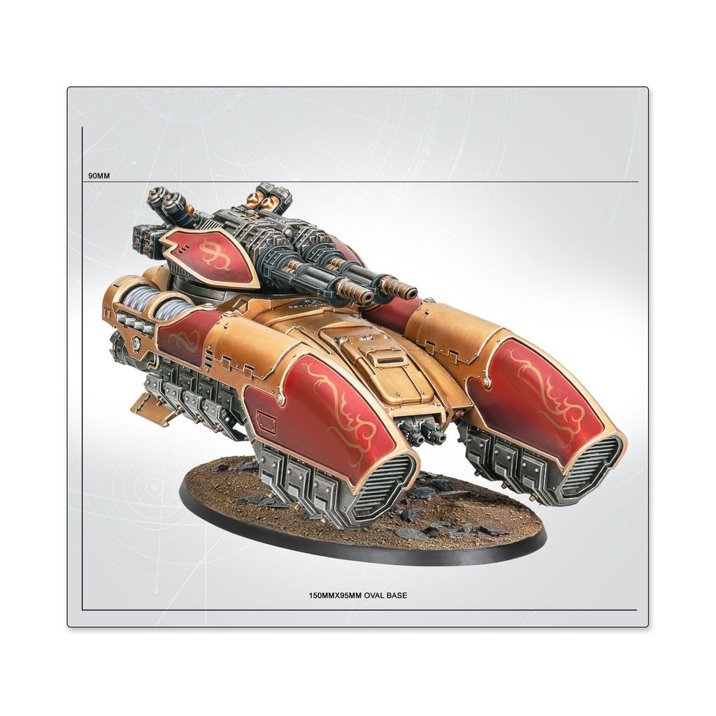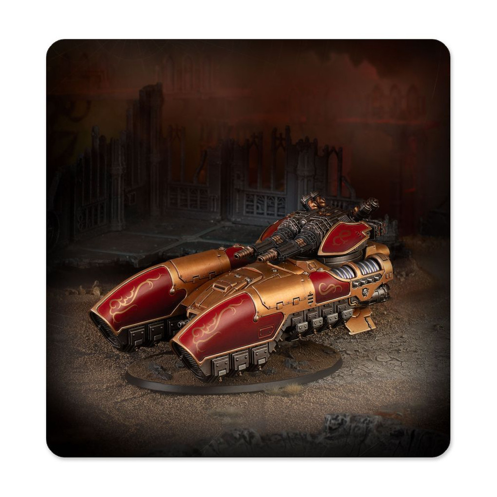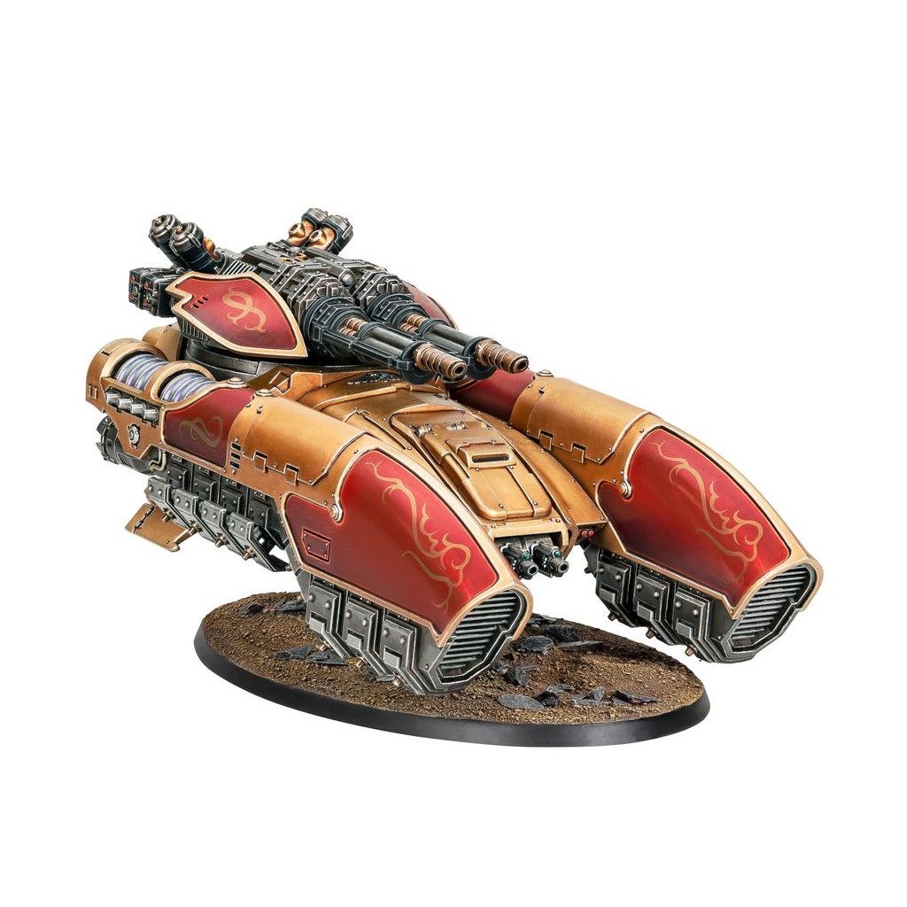 Le Char Antigrav Caladius offre à la Legio Custodes une plateforme mobile et robuste sur laquelle monter un des éléments les plus lourds de son arsenal: une carronade ardante Arachnus jumelée. Avec cette combinaison de systèmes et d'armes avancés, le Caladius Annihilator est peut-être l'unité blindée de ligne la plus puissante de sa taille au sein des forces impériales.