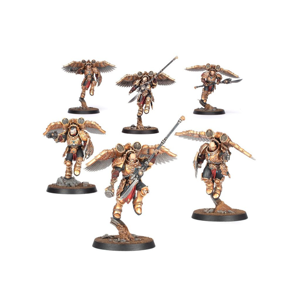 Chaque membre de l'unité peut être équipé soit d'un bocle Tarsus et d'un brutal destructeur cinétique pour abattre les ennemis de l'Empereur à distance, soit d'une lance Verutum pour les massacrer en mêlée. Chaque Venatari peut être optionnellement équipé d'une mine à cascade de neutronium pour détruire les véhicules au niveau moléculaire, et 2 Venatari peuvent être assemblés en train de tenir ces armes redoutables à la main. Vous trouverez également de nombreux éléments interchangeables, ce qui vous permet de personnaliser facilement vos prédateurs volants.