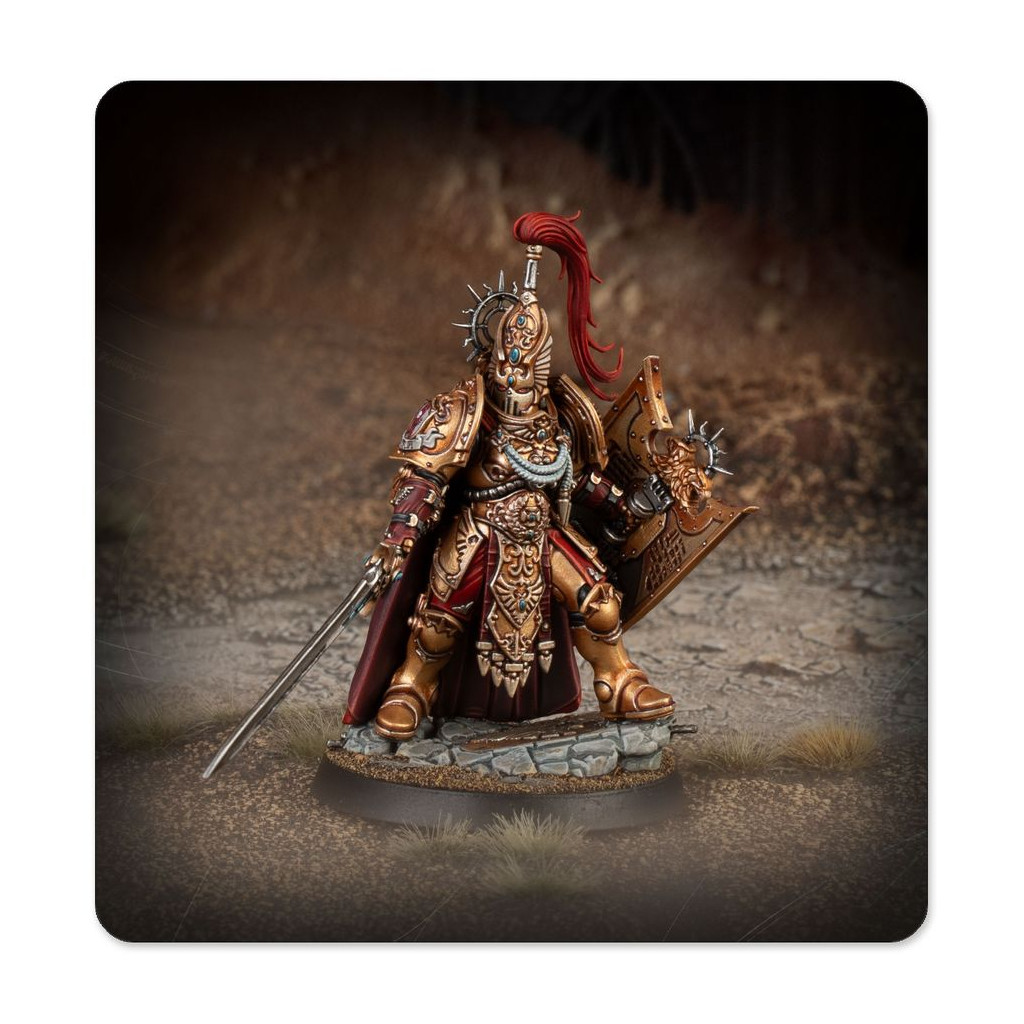 Cette figurine peut être utilisée pour représenter un Tribun, un puissant meneur tenu en très haute estime par les autres Custodiens.