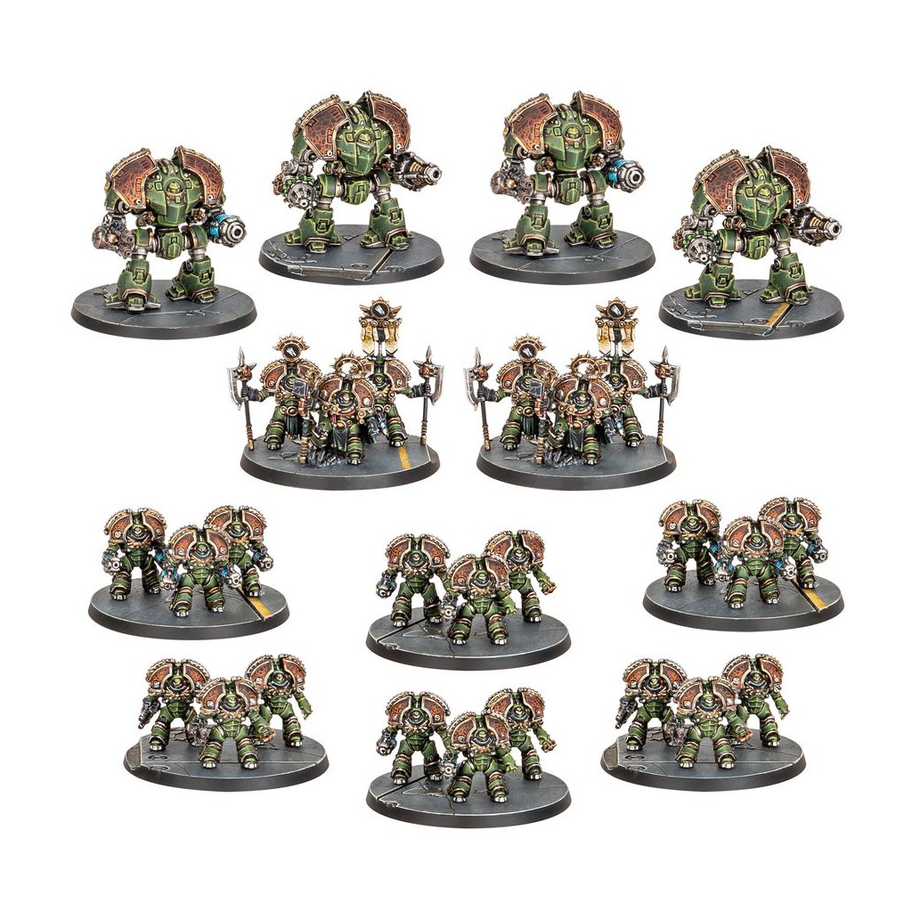 Le set inclut 28 figurines en plastique, qui se combinent pour obtenir 12 socles d'infanterie ou véhicules des Legiones Astartes: