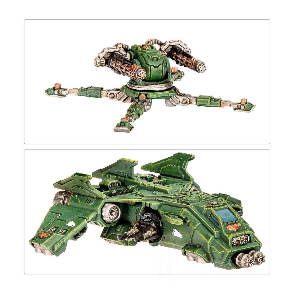 Ce kit est composé de 769 éléments en plastique, de 24x Socles Ronds Legions Imperialis de 32mm, de 2x Socles Volants Ronds Legions Imperialis de 40mm, de 4x Tiges à Rotule, de 4x Planches de Décalcos des Véhicules des Legiones Astartes et de 1x Planche de Décalcos des Appareils Volants des Legiones Astartes. Ces figurines sont fournies non peintes et nécessitent assemblage – nous recommandons d'employer la Colle Plastique Citadel et la peinture Citadel Colour.