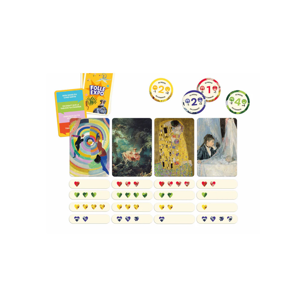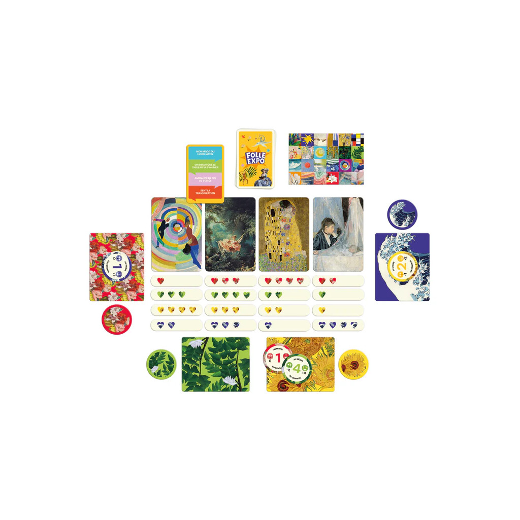 Dans Folle Expo vous incarnez tour à tour un Commissaire d’exposition un brin extravagant qui dirige un musée pas comme les autres. Choisissez le thème de votre exposition, classez les œuvres et tentez de deviner les préférences des autres joueurs pour gagner des points !