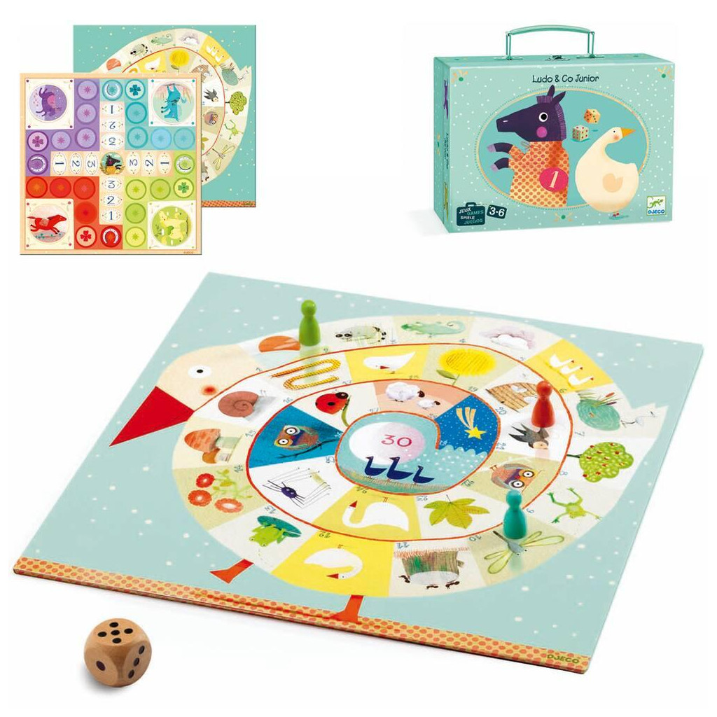 La malette comprend : un jeux de l'oie et un jeu de petits chevaux adaptés aux plus petits.