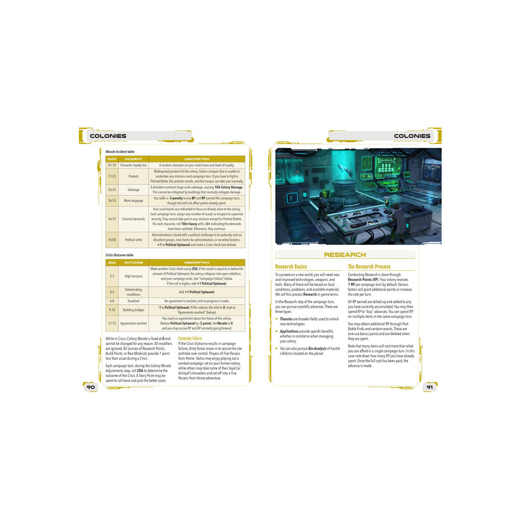 Rempli de tables aléatoires incluant artefacts, événements de colonie, crises, et bien plus.