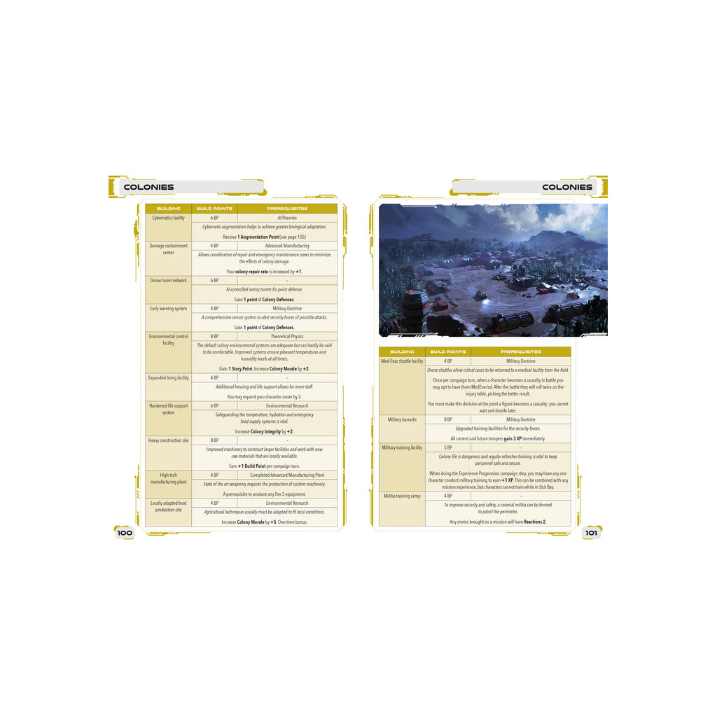 Vous devrez diriger l'expansion et la recherche de votre colonie, ainsi que commander vos personnages et vos troupes lors de combats tactiques avec figurines. Au fil du temps, vos colons gagneront en expérience et amélioreront leurs capacités de combat, tandis que le département R&D adaptera la technologie extraterrestre pour améliorer vos arsenaux... et peut-être même vos propres corps.