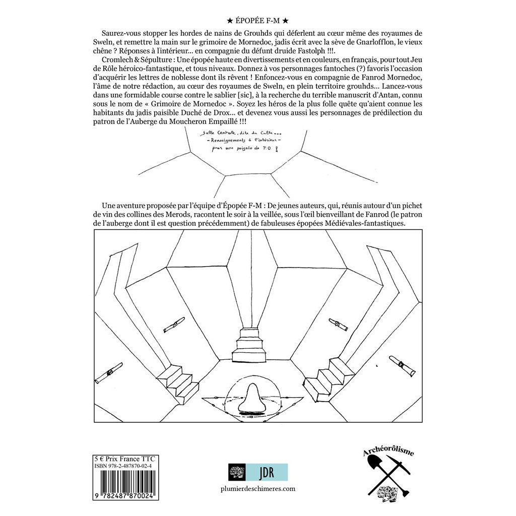 Lancez-vous dans une formidable course contre le temps, à la recherche du terrible manuscrit d’Antan, connu sous le nom de « Grimoire de Mornedoc ». Soyez les héros de la plus folle quête qu’aient connue les habitants du jadis paisible Duché de Drox... et devenez vous aussi les personnages de prédilection du patron de l’Auberge du Moucheron Empaillé !!!