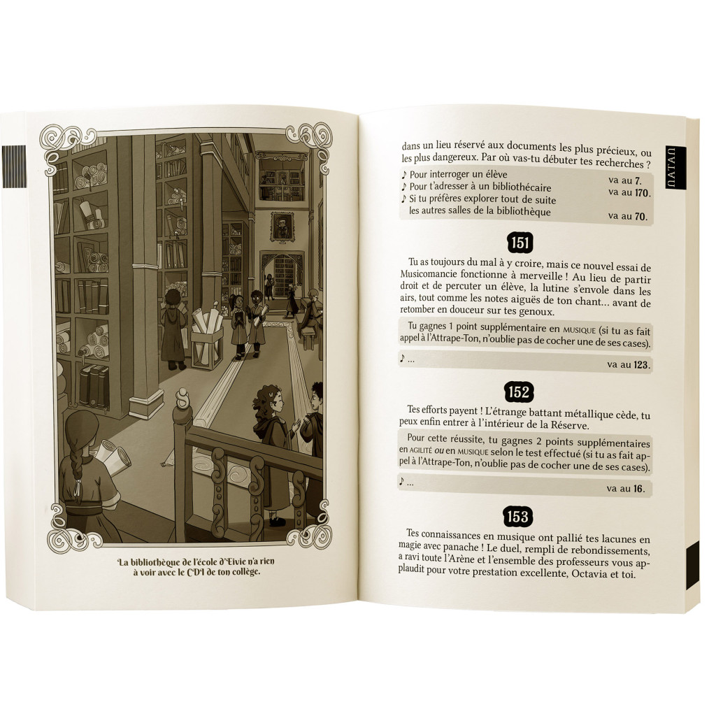 Le livre contient deux aventures : celle de Natan et celle d’Eivie. Ils évoluent dans la même intrigue mais chacun avec ses péripéties et ses défis. Des connexions régulières permettent aux personnages de communiquer. Lecture possible seul ou à deux (chacun dans un rôle). Les deux aventures sont imprimées tête-bêche : on retourne le livre pour lire la seconde. Les deux textes se rejoignent au milieu du livre.