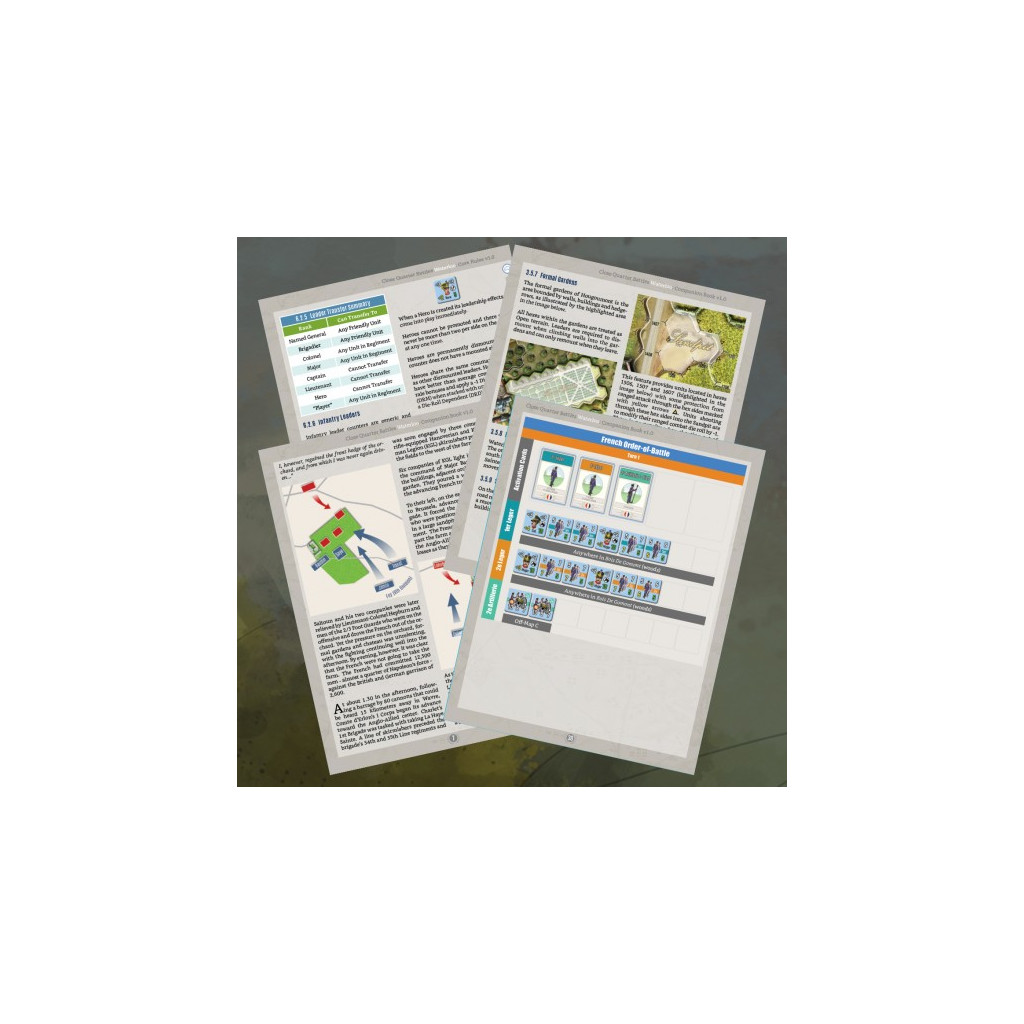 Axé sur le réalisme, la flexibilité tactique et un gameplay historiquement fidèle, le Livre Waterloo propose des mécaniques dynamiques de mouvement, des règles de moral et une résolution de combat simplifiée pour simuler les décisions instantanées et l’action brutale des engagements rapprochés. Que vous meniez un détachement de voltigeurs français, des tireurs britanniques ou des fusiliers prussiens, vous vivrez la campagne de Waterloo au plus près du terrain — une volée, une charge et un coup de baïonnette à la fois.