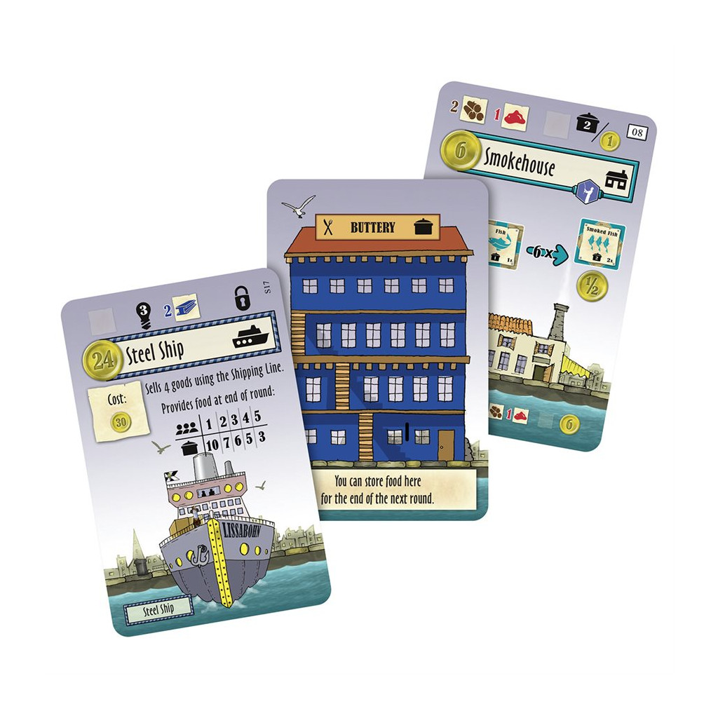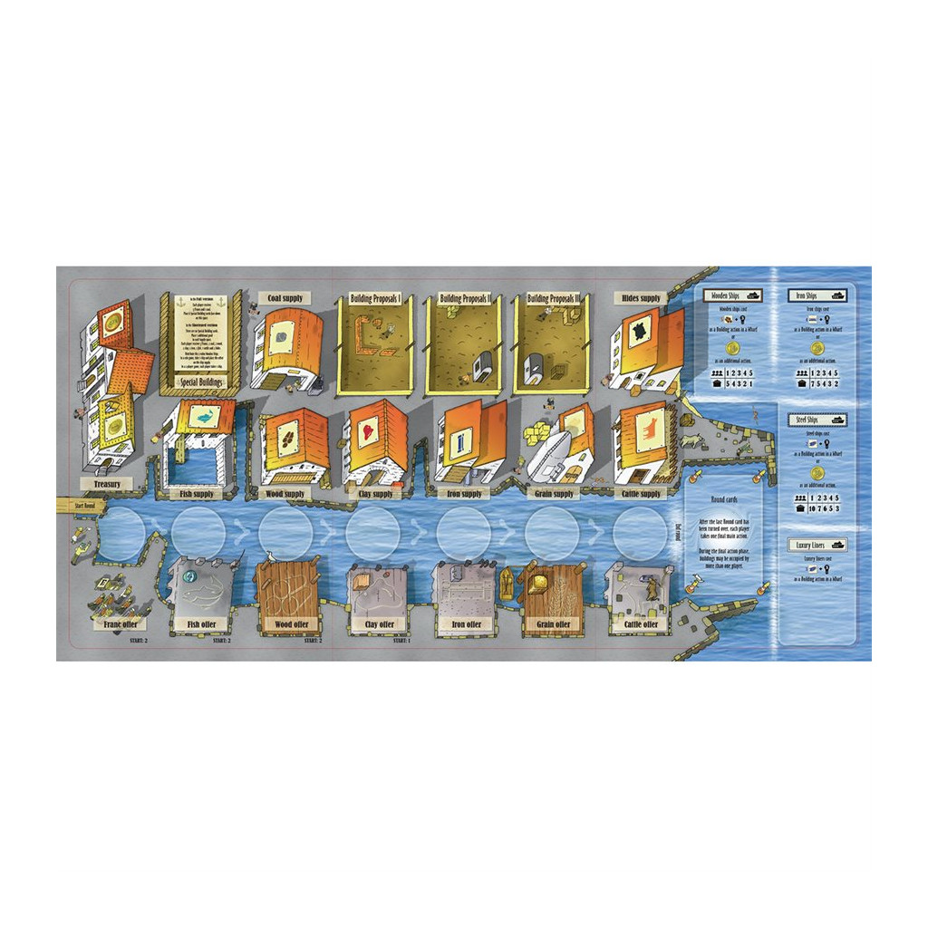 Le principe du jeu est simple. Le tour d’un joueur est divisé en deux phases : on commence par placer de nouvelles marchandises sur les différents Quais, puis on choisit une action. On peut choisir soit de prendre possession de toutes les marchandises d’un type occupant un Quai, soit d’utiliser l’un des bâtiments disponibles.