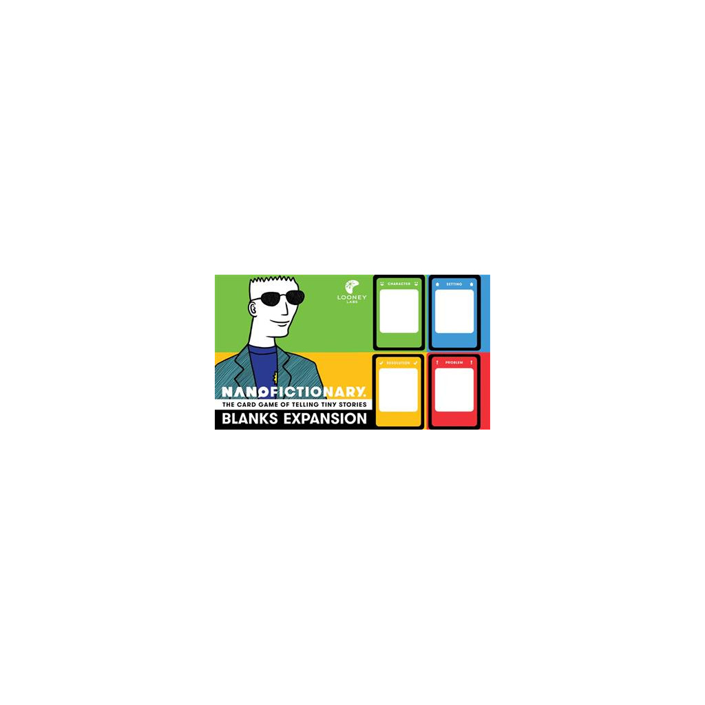 Portez votre narration à un niveau supérieur avec l’extension Nanofictionary Blanks ! Ce supplément créatif permet aux joueurs de personnaliser leur expérience en créant leurs propres cartes. Que vous soyez inspiré par votre livre préféré, une idée originale ou que vous souhaitiez simplement ajouter une touche personnelle, cette extension vous permet de créer des personnages, décors, problèmes et résolutions uniques pour vos histoires. Le design noir et blanc du jeu original a été volontairement gardé simple pour faciliter l’ajout de cartes faites maison et d’illustrations dessinées à la main.