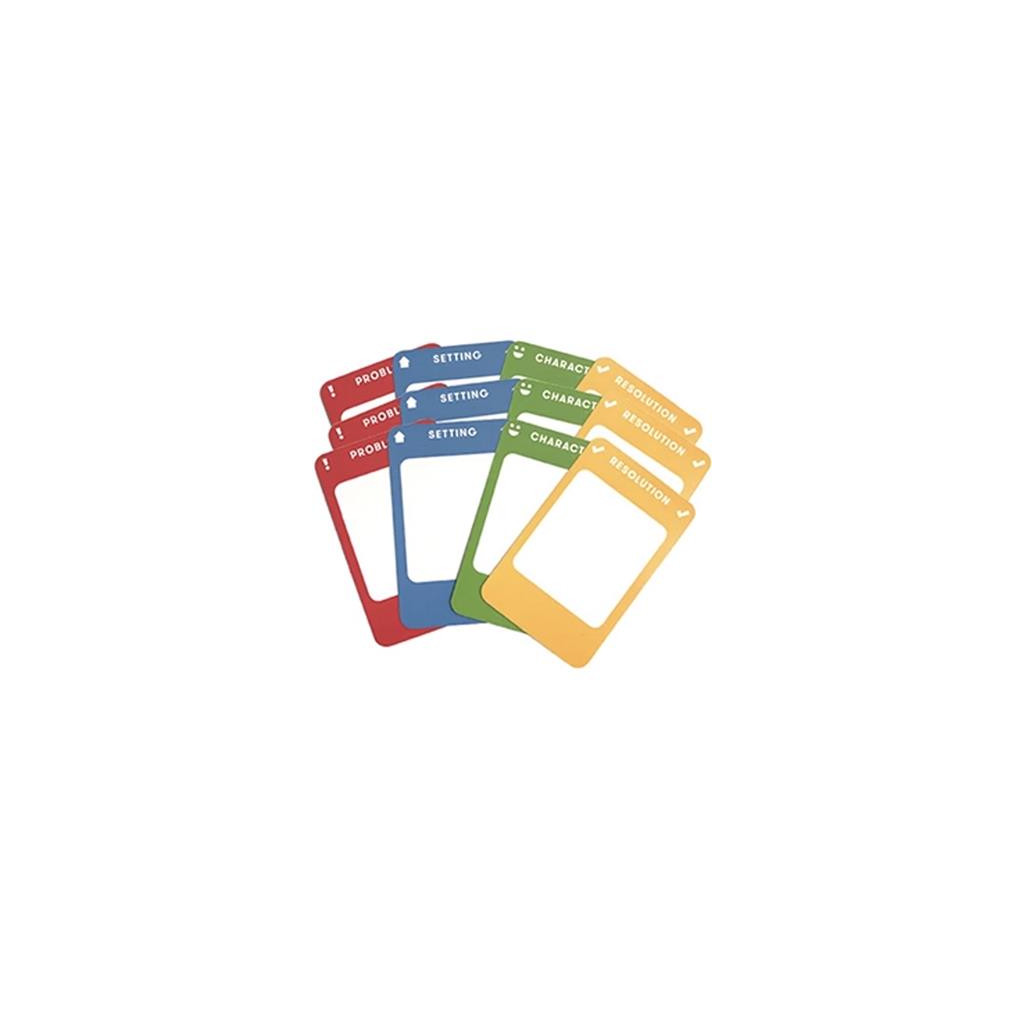 - 12 cartes vierges (3 de chaque : Personnage, Décor, Problème, Résolution) pour personnalisation