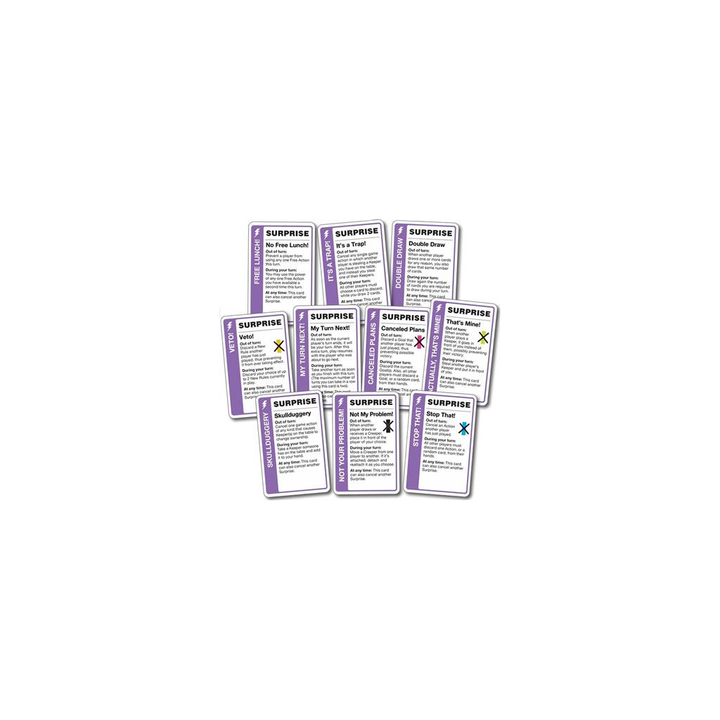- COMPATIBLE AVEC TOUS LES FLUXX : Fonctionne avec toutes les versions de Fluxx, même celles contenant déjà des surprises, rendant le jeu plus dynamique et divertissant.