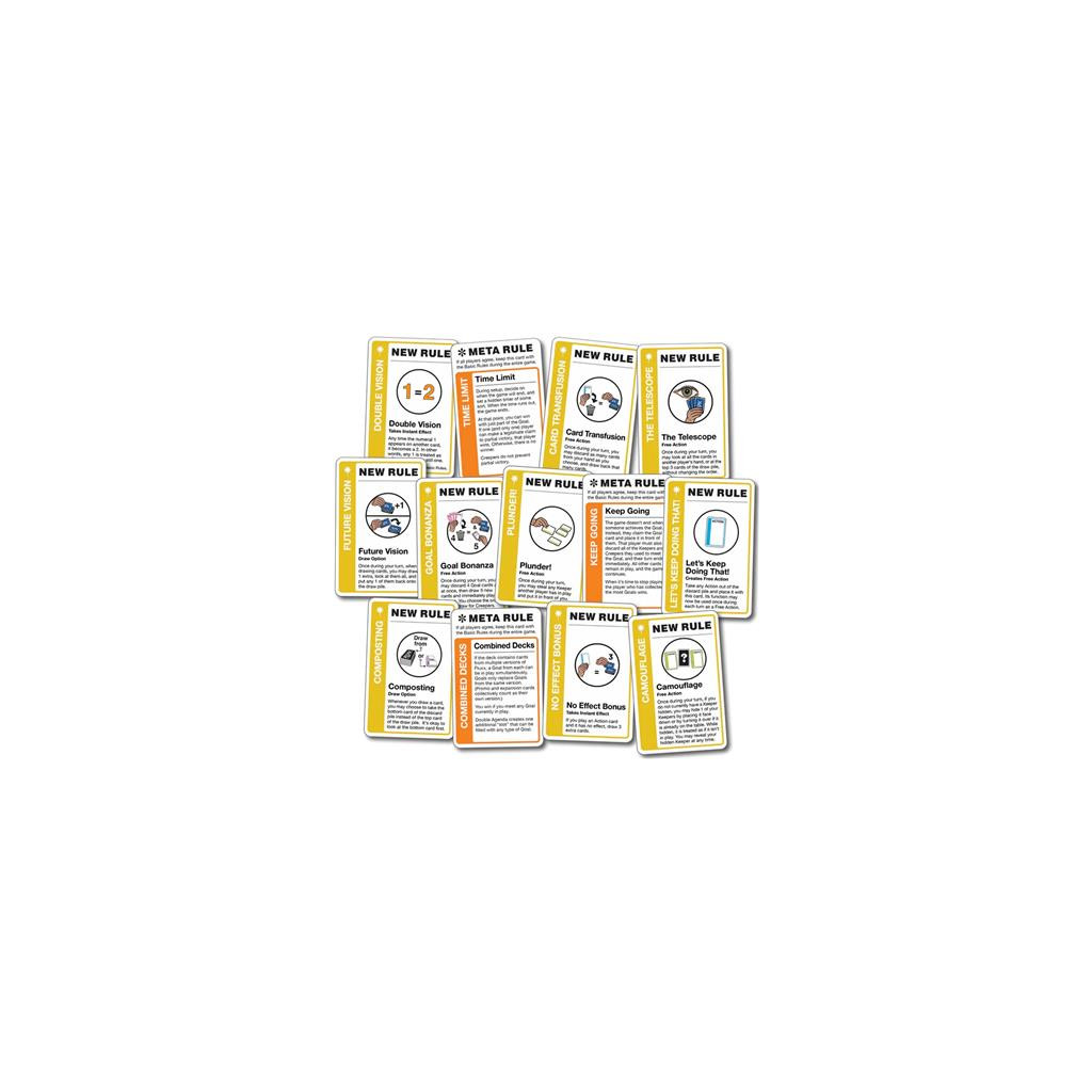 - AJOUTE DE NOUVELLES RÈGLES À TOUT DECK : Introduit dix cartes Règles Nouvelles supplémentaires pour enrichir et améliorer votre expérience Fluxx.