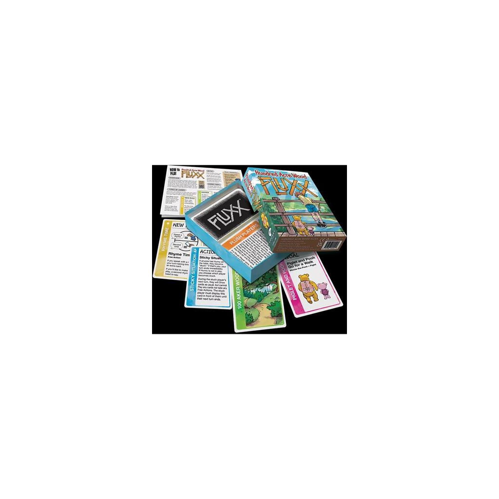 Entrez dans le monde magique de la Forêt des Rêves Bleus avec Hundred Acre Wood Fluxx, le jeu que vous pouvez partager avec vos peluches ! Rejoignez Winnie l’Ourson, Christopher Robin, Porcinet et Tigrou dans cette aventure pleine de surprises et d’espiègleries classiques. Que vous flottiez avec des ballons, aidiez Bourriquet à retrouver sa queue ou évitiez les imaginaires Heffalumps et Woozles, chaque partie est un nouveau chapitre de ce conte bien-aimé. Conçu pour les fans de tous âges, cette version unique de Fluxx inclut même une Méta-Règle spéciale permettant à vos amis en peluche de participer au plaisir.