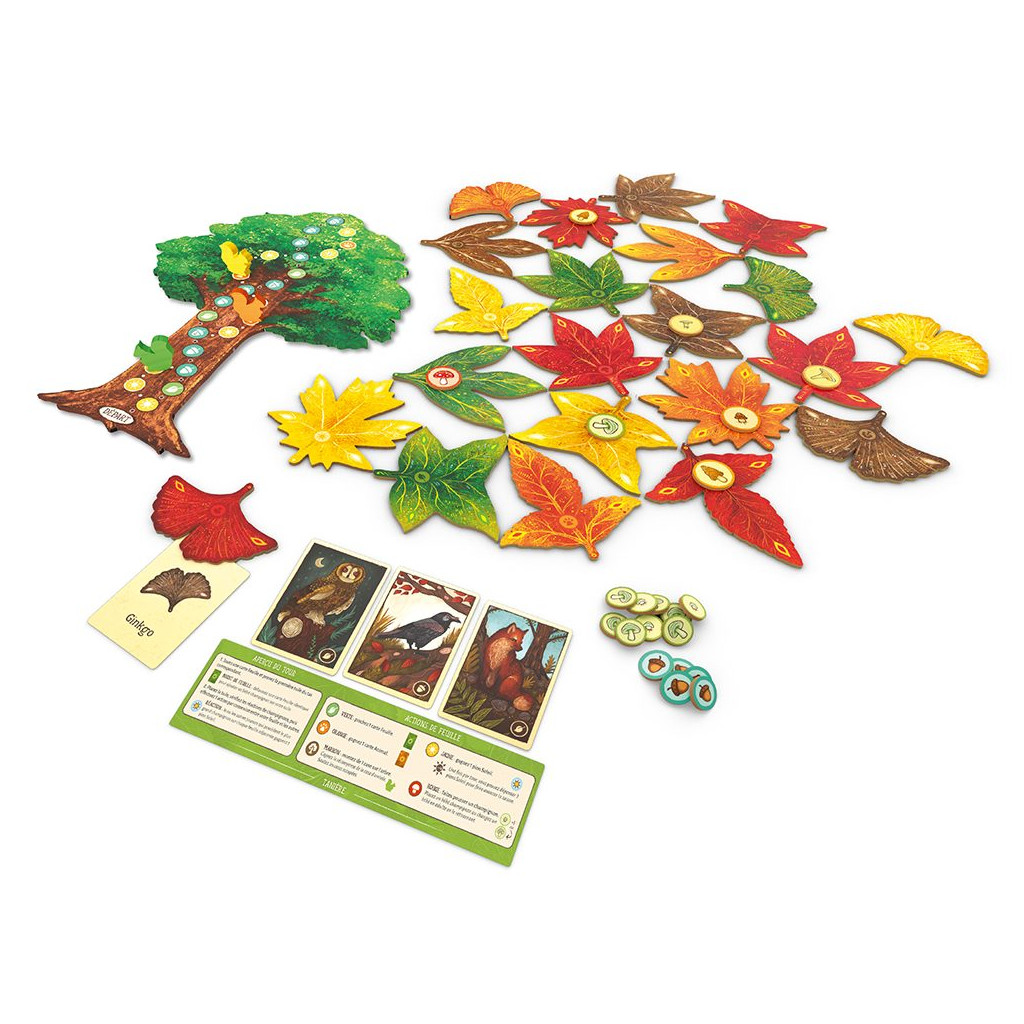 Placez stratégiquement vos tuiles pour attirer les animaux des bois, faire pousser de magnifiques champignons, aider votre écureuil à grimper à l’arbre, ou encore gagner des cartes Feuille et des jetons Soleil.
