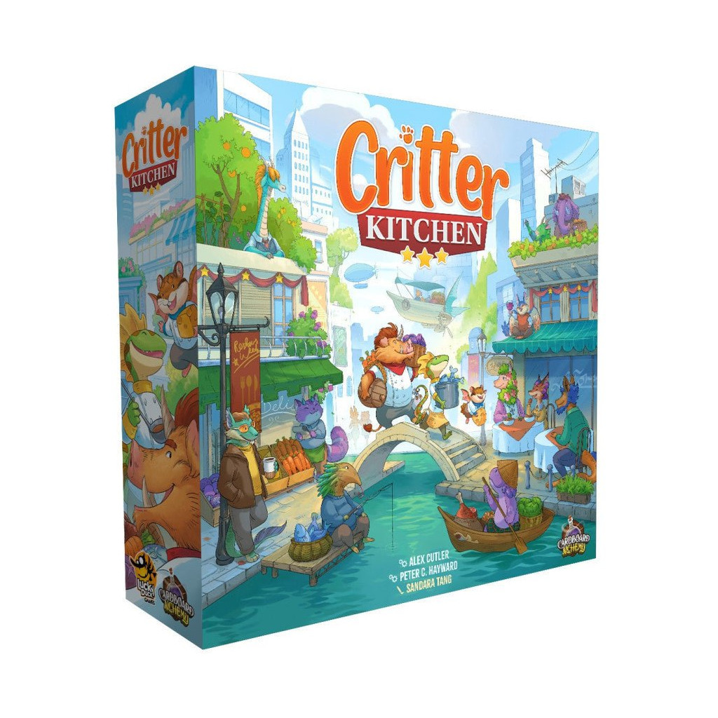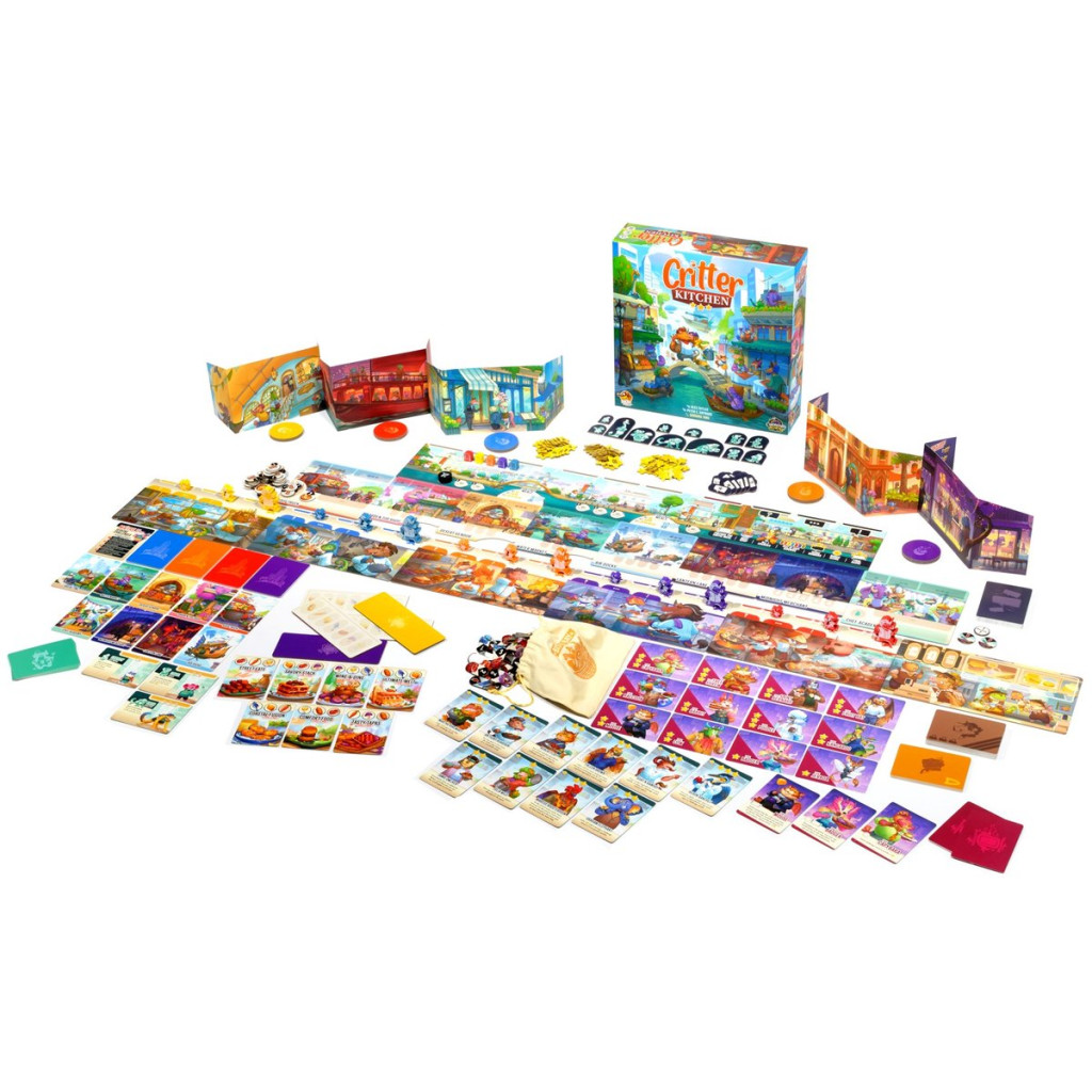 Critter Kitchen est un jeu dans lequel les joueurs décident secrètement où envoyer leurs 3 différents Chefs (travailleurs) dans le but de rassembler les meilleurs ingrédients plus rapidement que leurs concurrents. Des rumeurs circulent sur l’arrivée du Critique en ville, et vos Chefs ont la possibilité de les écouter. Jouez avec des capacités différentes pour le Critique, les Rumeurs et le Restaurateur afin de garantir une expérience différente à chaque partie !