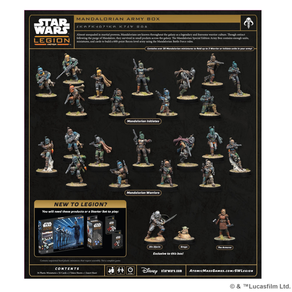 - 36 FIGURINES TRÈS DÉTAILLÉES : Comprend une vaste collection de guerriers et de personnages mandaloriens pour créer une puissante armée Star Wars: Legion de 600 points.
