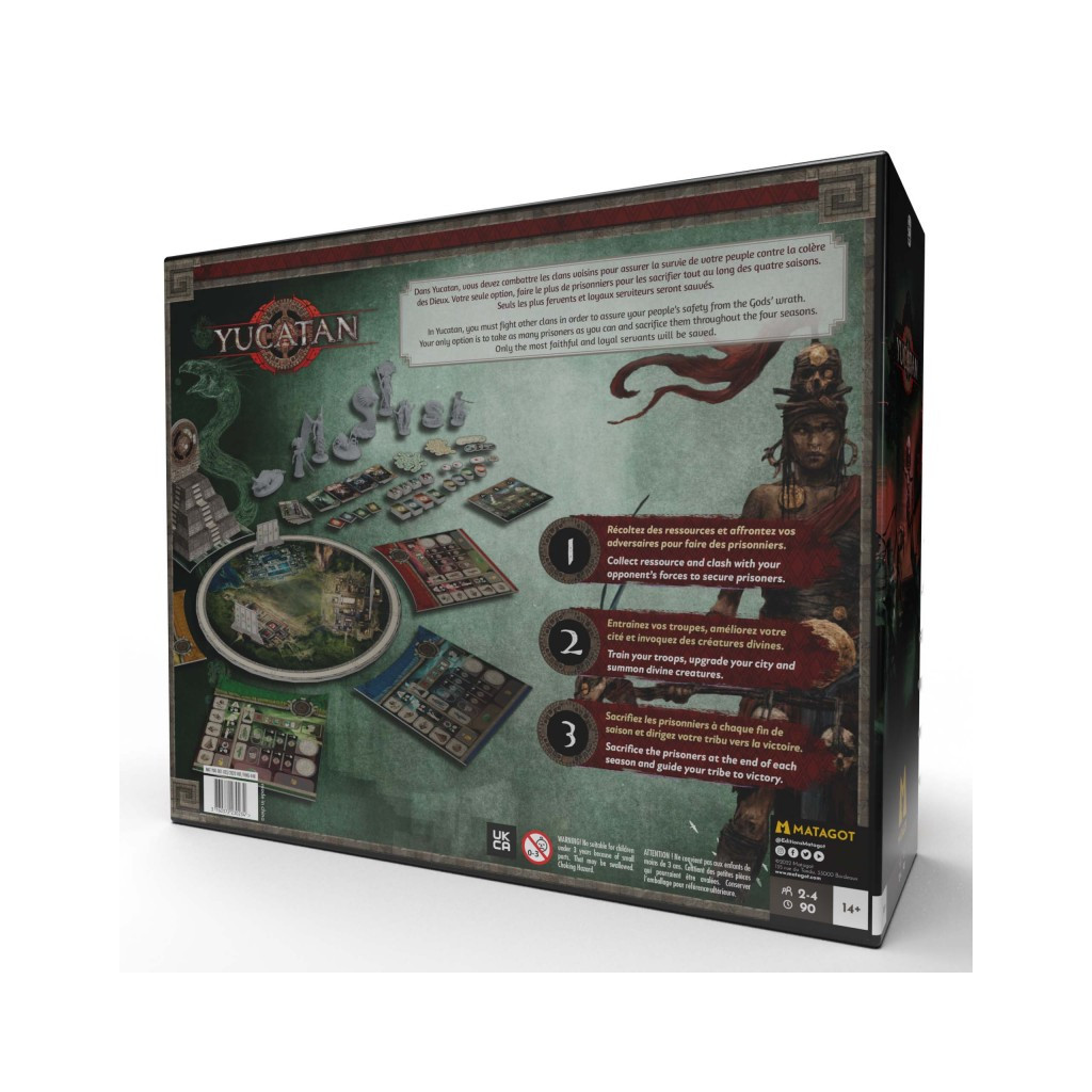 Dans Yucatan, vous êtes le chef d'une cité maya. Vous avez promis à votre peuple de gagner les faveurs des dieux, et leur destin est entre vos mains. Envoyez vos chefs de guerre capturer vos ennemis, augmentez votre puissance à chaque saison du calendrier sacré et sacrifiez vos prisonniers aux dieux mayas pour assurer votre domination.