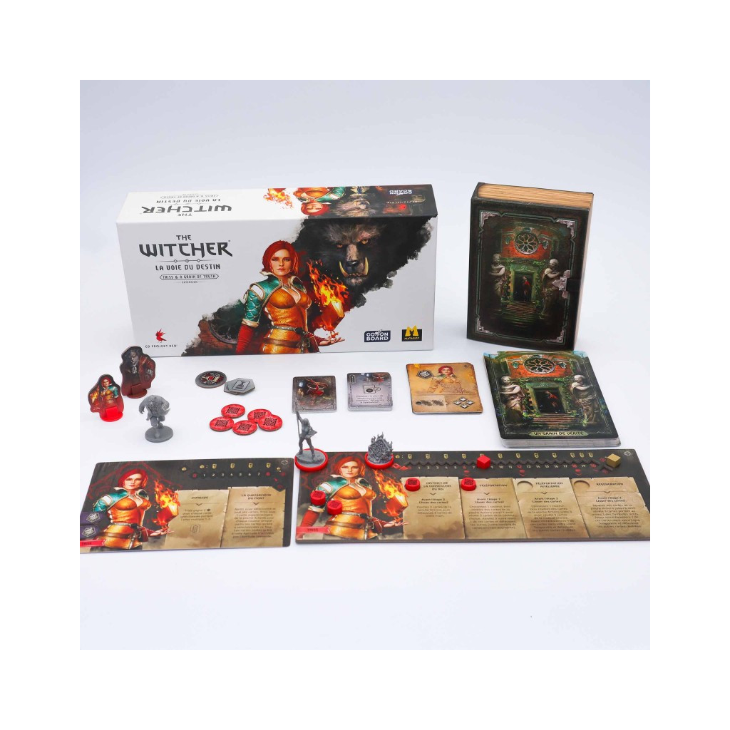 The Witcher: La Voie Du Destin - Triss & The Grain of Truth est une extension pour le « Kennerspiel » Path of Destiny qui introduit Triss Merigold en tant que personnage jouable. Triss rejoint votre groupe avec ses capacités de téléportation et ses pouvoirs uniques qui peuvent perturber le timing des jeux de cartes et offrir une flexibilité stratégique. L'extension introduit également une nouvelle histoire, « Un Grain de Vérité », dans laquelle les joueurs enquêtent sur le manoir magique de Nivellen pour percer les secrets derrière d'étranges événements.
