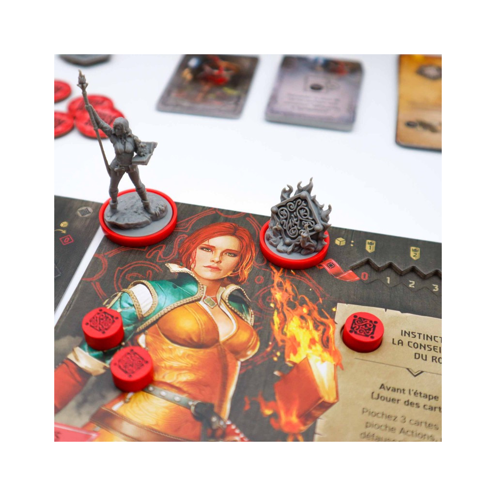 Cette extension ajoute de nouveaux composants : la figurine et le standee de Triss, la figurine et le standee de Nivellen, un tableau Automa solo, un tableau de personnage double couche, de nouvelles cartes Histoire, des cartes Mystère, des marqueurs, et plus encore. Ces nouveaux éléments s'intègrent au jeu de base, enrichissant à la fois la profondeur narrative et les options stratégiques.