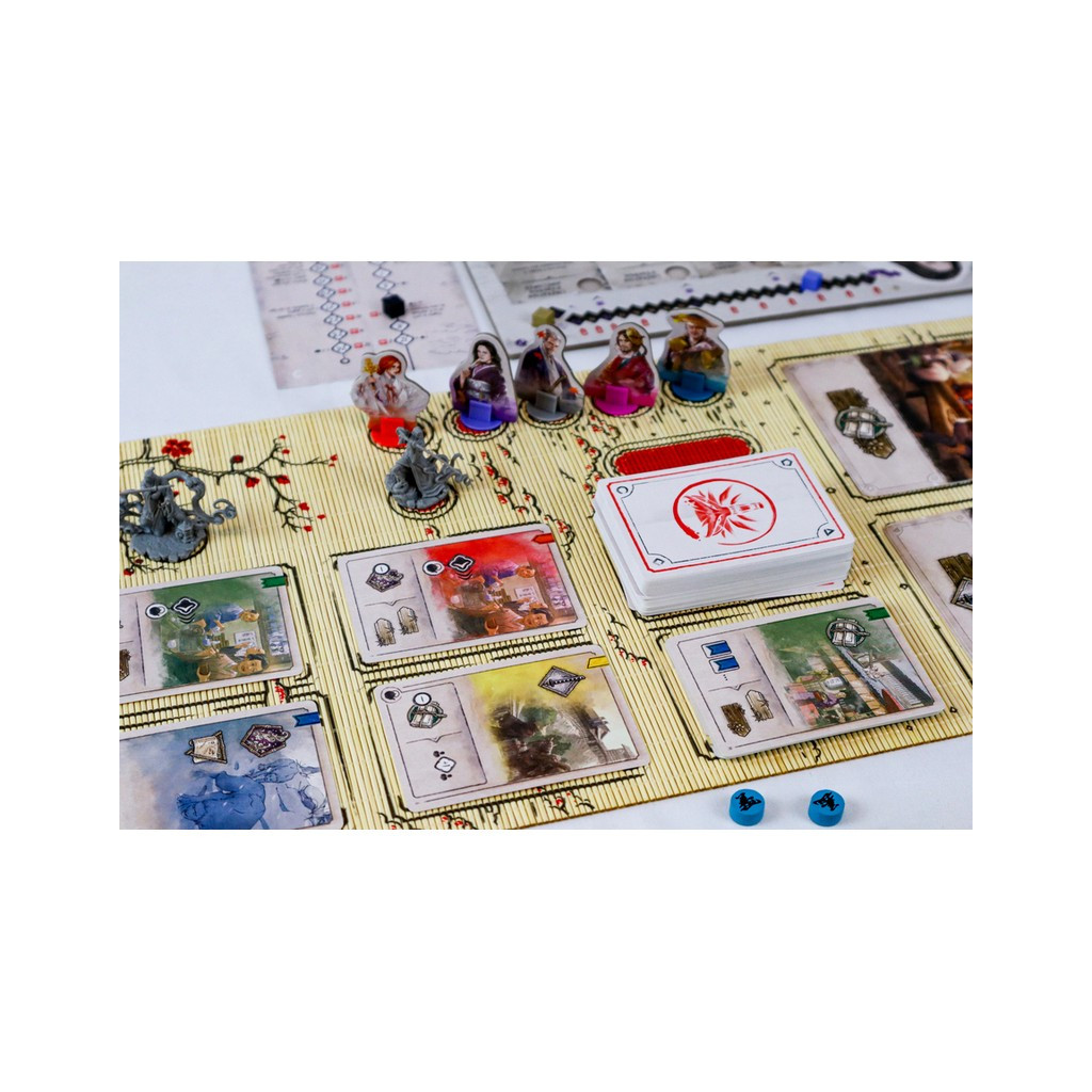 La variété des personnages, les Pistes de Partenariat, ainsi que le nouveau grand deck de cartes Action rendront chaque visite dans l'univers japonais du Witcher unique et tout aussi captivante. Dans la boîte, vous trouverez 5 Pistes de Partenariat recto-verso, à placer entre les joueurs voisins. De nouveaux symboles et effets sur les cartes Action exigent souvent des voisins qu'ils déterminent ensemble des tactiques communes pour le jeu de cartes. De nouveaux effets permettent aux joueurs de progresser sur leurs pistes, obtenant des bonus supplémentaires ensemble. Un autre composant qui renforce le sentiment de construction de relations sont les cartes spéciales de Capacité de Personnage. Certains effets de la Piste de Partenariat vous permettent d'utiliser les capacités spéciales de vos compagnons assis à côté de vous. Faites confiance à vos Partenaires, mais concentrez-vous sur l'accomplissement de vos propres objectifs !